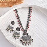 Abharan Pink Teardrop Cut Stones and Pearls Floral Jewellery Set