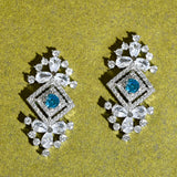 Sparkles of the morning dew have inspired these beautiful drop earrings, which have been crafted from high quality brass. Embellished with round cut zirconia gemstones, these earrings have been given a silver plating. Pair with any of your favourite formal...
