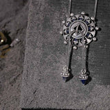 Lightly embellished triangles motif earrings inspired by mythology and related symbols. Made from brass and oxidised plated. Pair with ethnic attire.