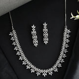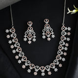 Cz Elegance Silver Plated Red Stone Necklace Set