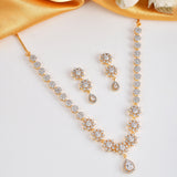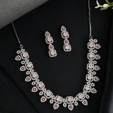 Oval Cut Zircons Embellished Floral Motifs Brass Silver Plated Jewellery Set