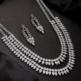 Elevate your elegance with the Voylla Women's Necklace Set, a stunning ensemble crafted from high-quality brass and plated with lustrous white rhodium. This exquisite set features two intricately designed necklaces adorned with sparkling American diamonds, each meticulously set to catch the light and dazzle with every movement. The necklaces are complemented by matching earrings, creating a harmonious and sophisticated look.The design showcases a beautiful arrangement of clear, round-cut American diamonds, accented with vibrant red gemstones that add a touch of color and luxury. The cascading layers of diamonds and gemstones create a mesmerizing effect, perfect for making a statement at any festive or special occasion.Ideal for party wear, weddings, festive celebrations like Diwali and Rakshabandhan, or as a thoughtful gift for Valentine's Day, Christmas, New Year, or Holi. This set makes a perfect gift for women, whether it's for a sister, girlfriend, wife, mother, or any special woman in your life. The Voylla Women's Necklace Set is not just jewelry; it's a timeless piece that embodies grace and sophistication, making it an ideal choice for gifting and personal adornment.