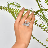 Step into the spotlight with the Halo Essence Floral Radiance Statement Ring—a dazzling fusion of vintage charm and modern elegance. Crafted in premium brass and finished with a luminous white rhodium plating, this American diamond ring features a radiant CZ...