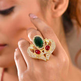 The Voylla Humera Choker Necklace Set is a stunning piece from the Panchhi collection, crafted from high-quality brass and adorned with a luxurious gold plating. This exquisite set features intricate American Diamond Kundan work, with vibrant red and green enamel accents that evoke the elegance of nature's most majestic birds. The choker is embellished with delicate pearl drops, adding a touch of sophistication and grace. Perfect for festive occasions, weddings, and parties, this necklace set is a versatile addition to any wardrobe. It makes an ideal gift for women, whether for Valentine's Day, Diwali, Raksha Bandhan, Christmas, or New Year, and is sure to delight mothers, wives, girlfriends, and sisters alike. The timeless beauty of Kundan, combined with the harmonious design, makes this set a cherished treasure symbolic of love and elegance.