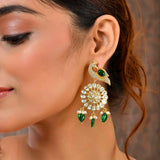 Introducing the exquisite Voylla Mayurika Dangler Earrings from the Panchhi collection, a perfect blend of intricate design and top-notch quality. Crafted from premium brass and adorned with luxurious gold plating, these earrings showcase a stunning peacock motif embellished with American...