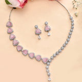 Hearts Cushion Setting Emerald Cut Cz Embellished Silver Plated Brass Jewellery Set