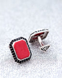 Milestone Cufflinks with Red Enamel Detailing