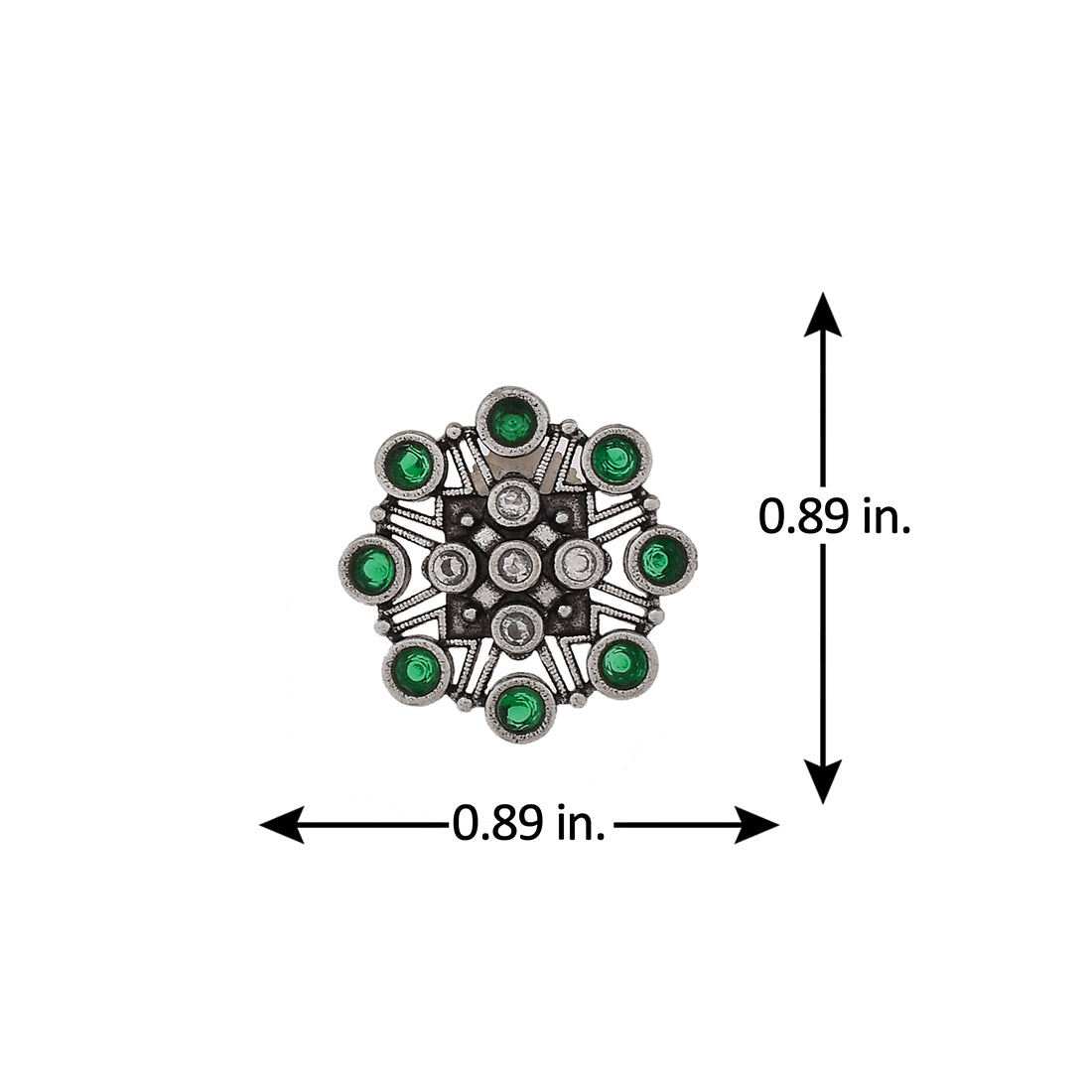 Floral stud earrings embellished with round cut green stones. Made from brass and oxidised silver plated. The earrings can be paired with just about everything.Caring for your fashion jewelry: We, at Voylla, take care of every piece of jewelry so...