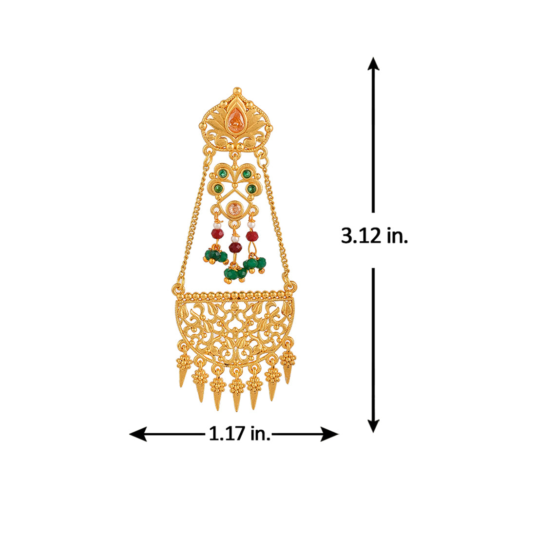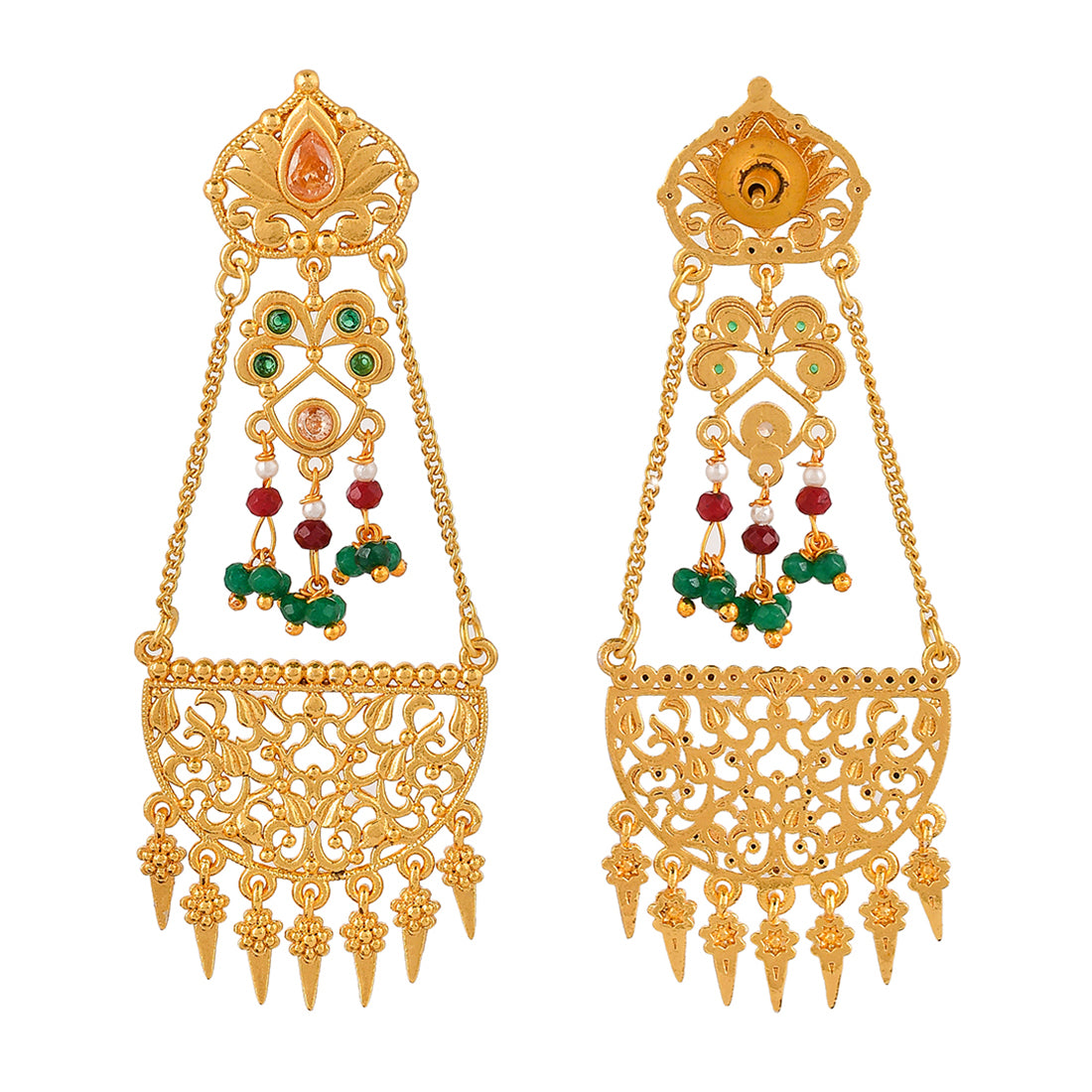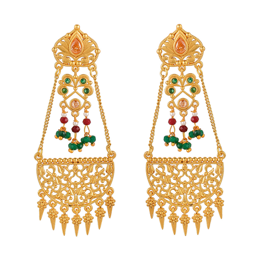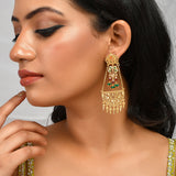 Abharan Stones and Pearls Gold Plated Drop Earrings