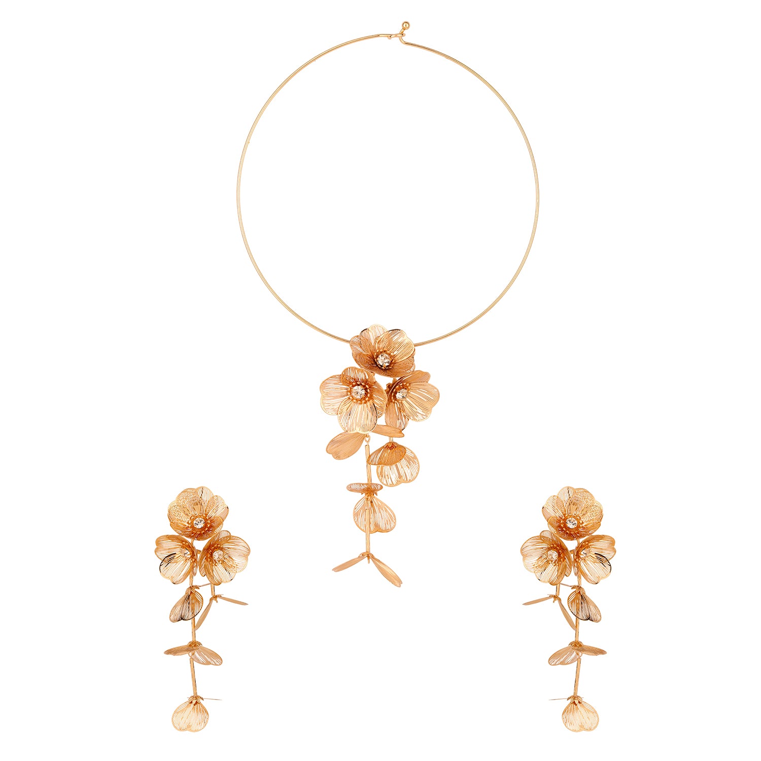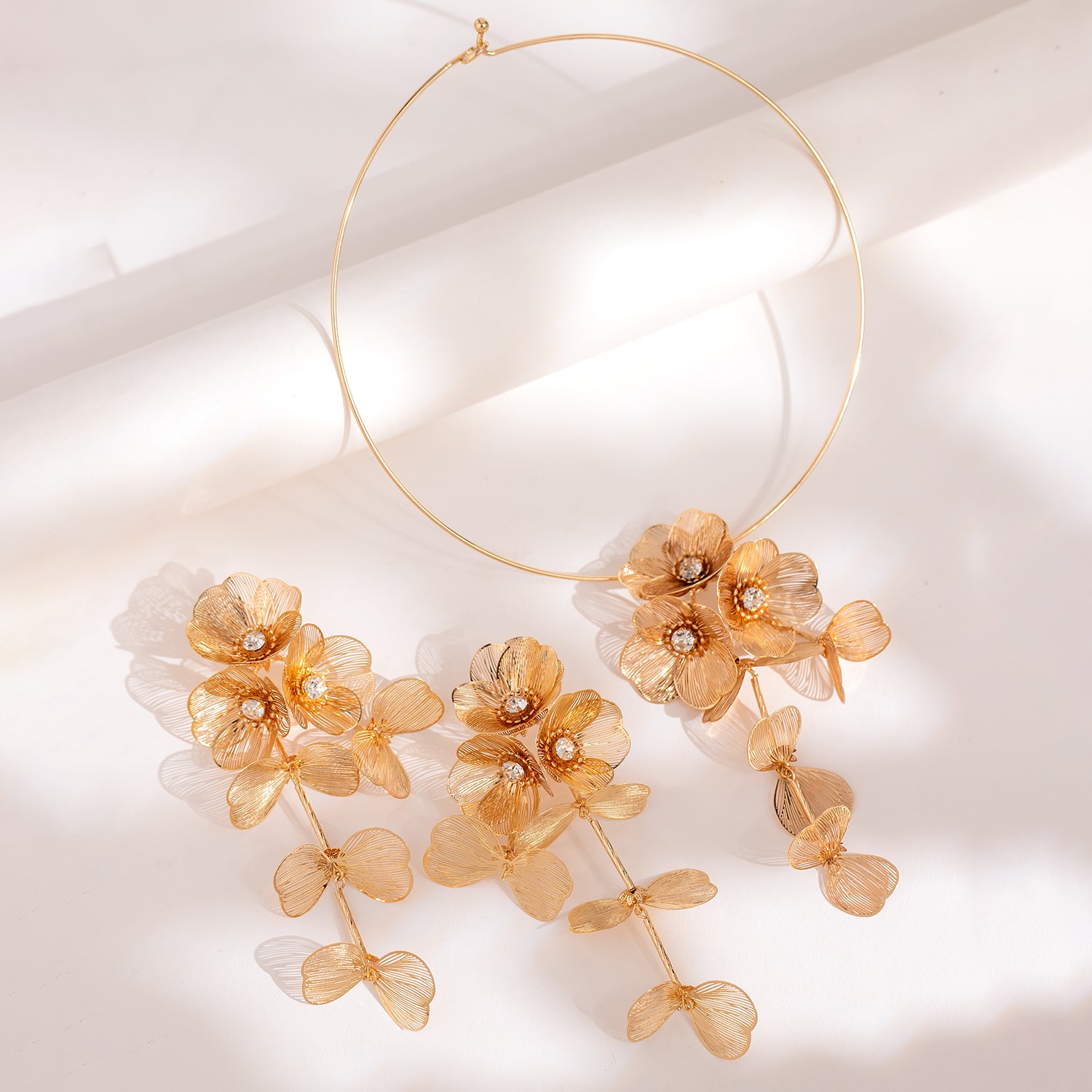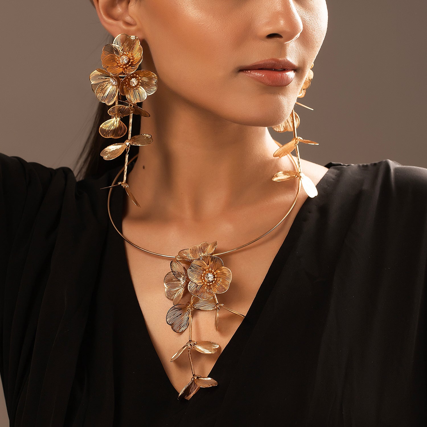 The Blume Golden Cascade Flora Vine Pendant Set for women is a true celebration of feminine elegance, blending designer artistry with a touch of nature's charm. Made from premium-quality alloy and plated in radiant yellow gold, the set showcases a cascading floral vine design, beautifully detailed with shimmering stones that exude luxury and sophistication. As part of the Blume collection, known for its unique and trendy Korean-inspired jewelry, this pendant set is a versatile addition to any wardrobe. Its golden hues pair seamlessly with both Western and traditional attire, making it a statement piece for parties, vacations, chic office looks, or even everyday wear. Whether styled with a floral maxi dress, a crisp white blouse, or a festive saree, this pendant set elevates any outfit with its chic and elegant allure. Perfect as a thoughtful gift for women, whether it’s for Valentine's Day, Diwali, Rakshabandhan, Christmas, or Eid, it’s ideal for sisters, girlfriends, wives, mothers, and lovers alike. This pendant set is more than just an accessory—it's a timeless expression of style and sophistication, perfect for every modern woman.