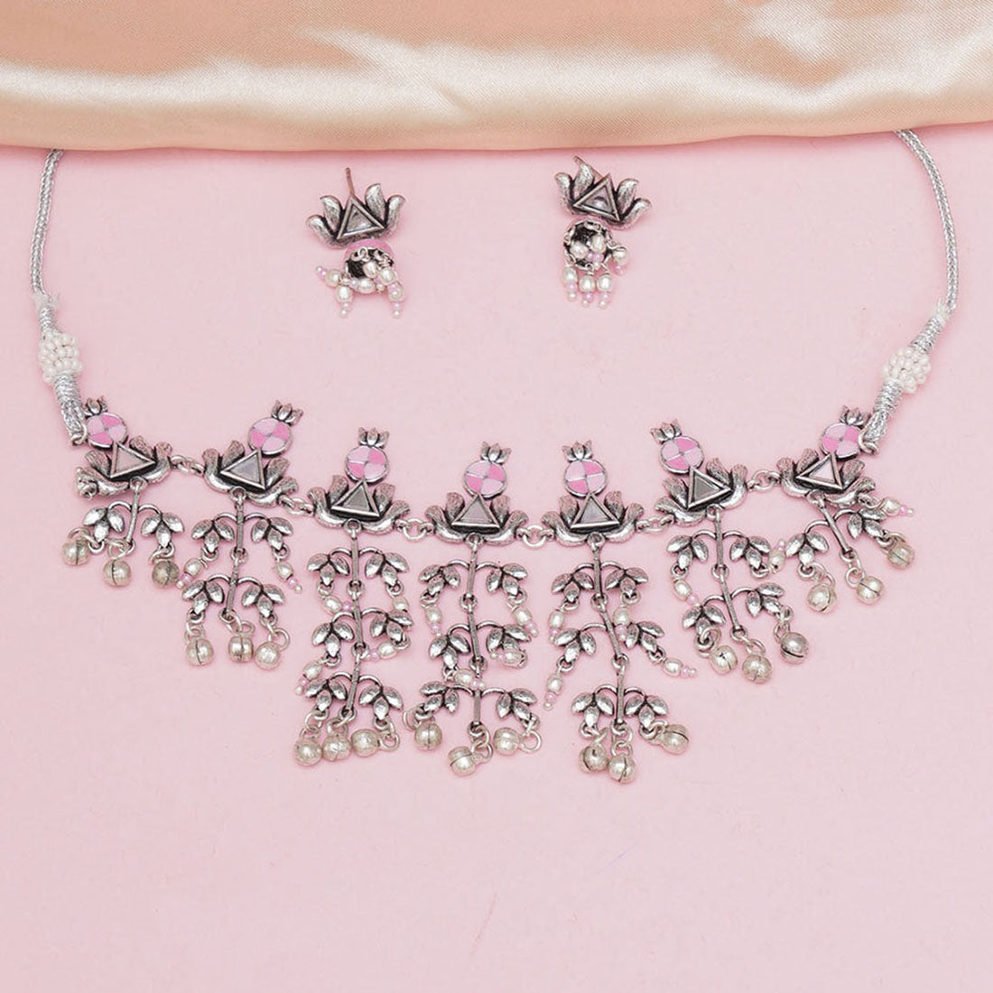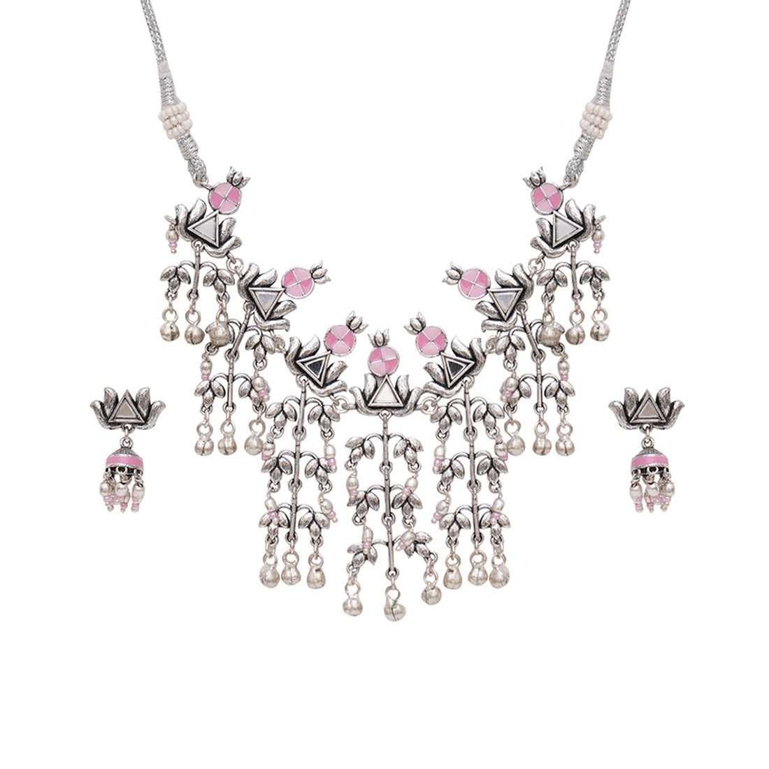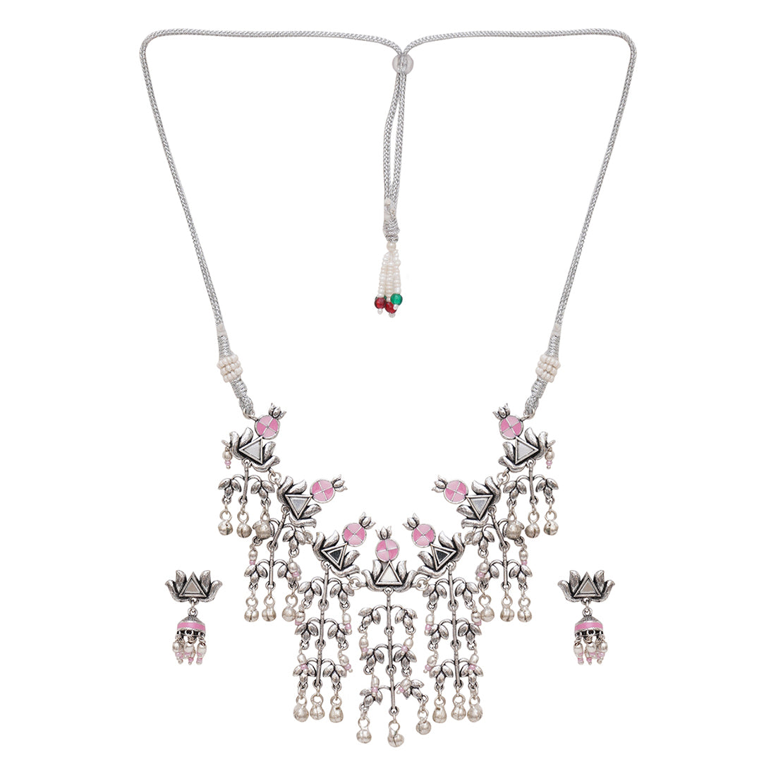 Festive Hues Silver Plated Long Fusion Pink Necklace Set