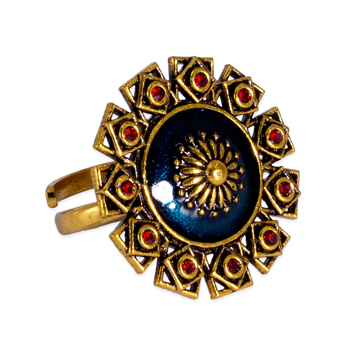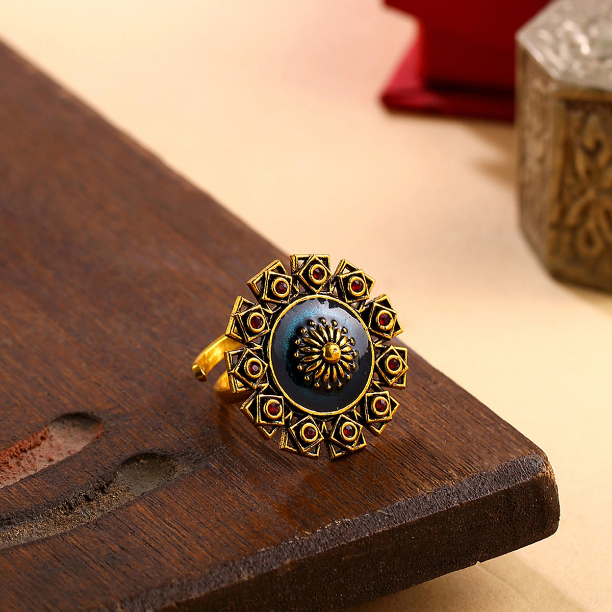 The Arabian Nights Brass round Rings with Oxidized Plating with Brass Material is the newest and the next thing you need to add to your wardrobe. Get this in Red and Silver now and add oomph to your wardrobe right away!