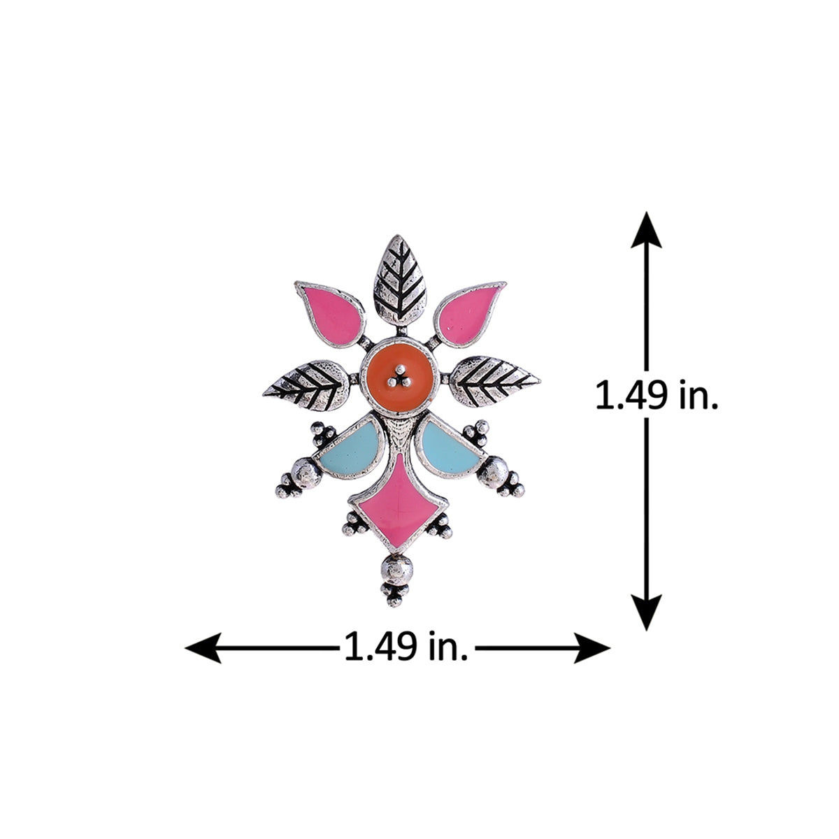 Floral motif ring made from brass and inspired by block printing patterns. Silver plated, enamel embellished and good for everyday wear. This piece of jewelry comes with the Voylla assurance of quality and durability. Caring for your fashion jewelry: We,...