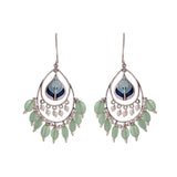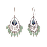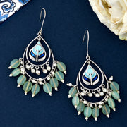 Green beads embellished drop earrings inspired by block printing. Made from brass and silver plated. Wear with ethnic attire.