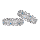 Inspired by the beauty of the morning dew in all its glory, this luxurious cuff bracelet has been fashioned out of brass. Silver plated and embellished with perfectly cut white and blue CZ gems in a cluster setting, the bracelet...