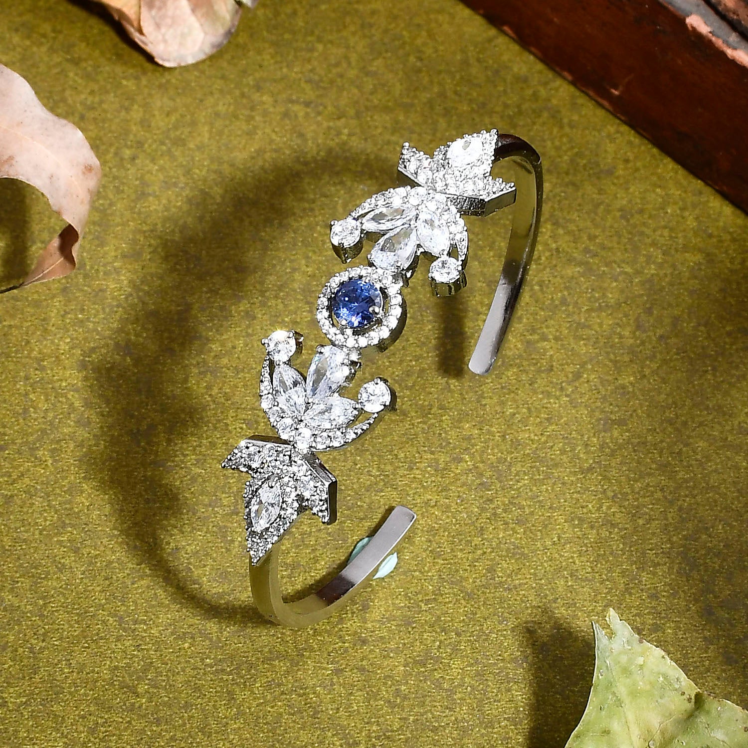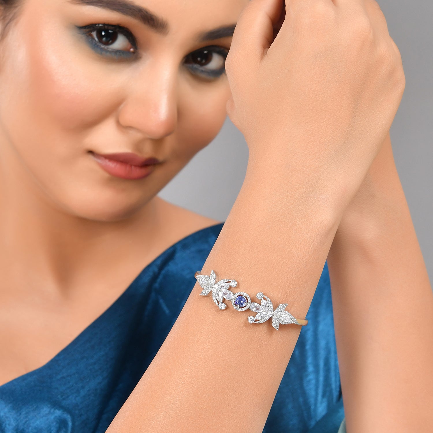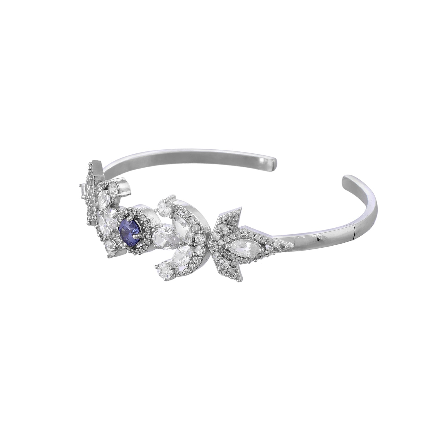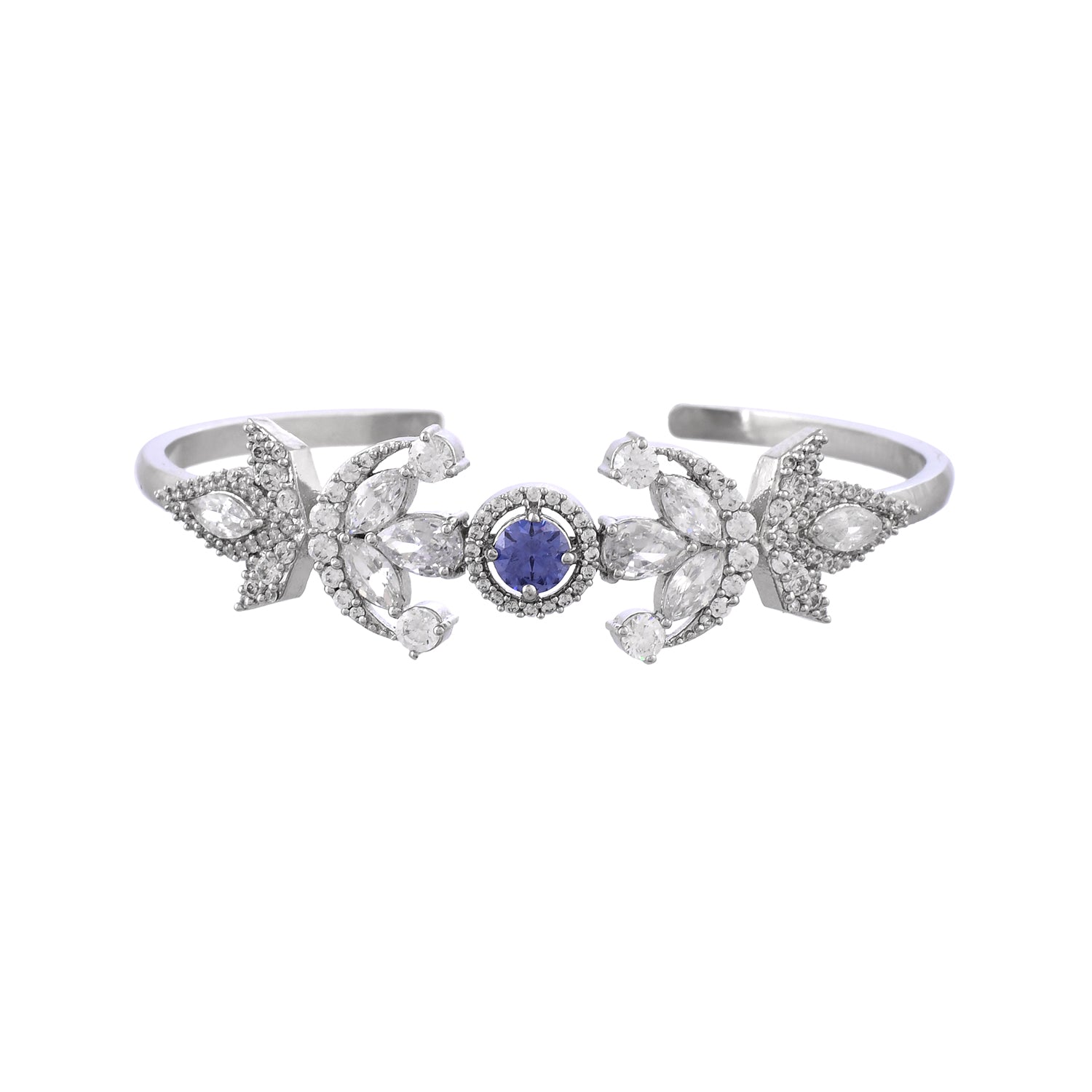 The morning dew and its beauty have inspired this eye-catching bracelet, which has been fashioned out of brass. Silver plating and cubic zirconia gemstones set in floral pattern add to the charm of this immaculate piece, which can be paired with just about everything.