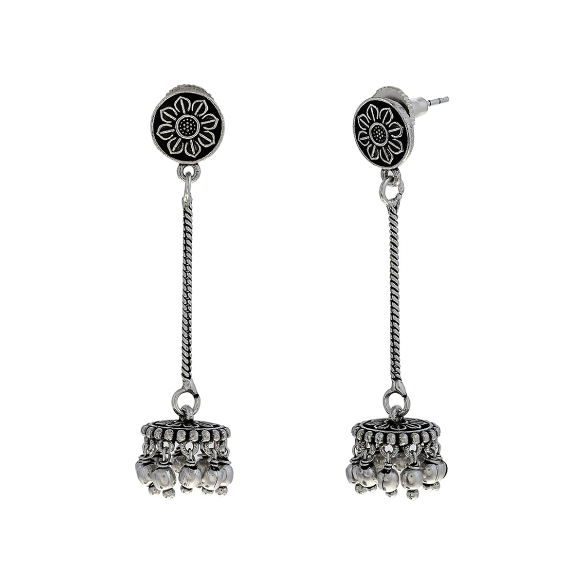 Embrace the bohemian vibes with our captivating Hanging Oxidized Earrings. Crafted with care and adorned with oxidized finishes, these earrings exude an earthy charm and free-spirited appeal. Let them swing and sway as you move, adding an element of whimsy to your ensemble.