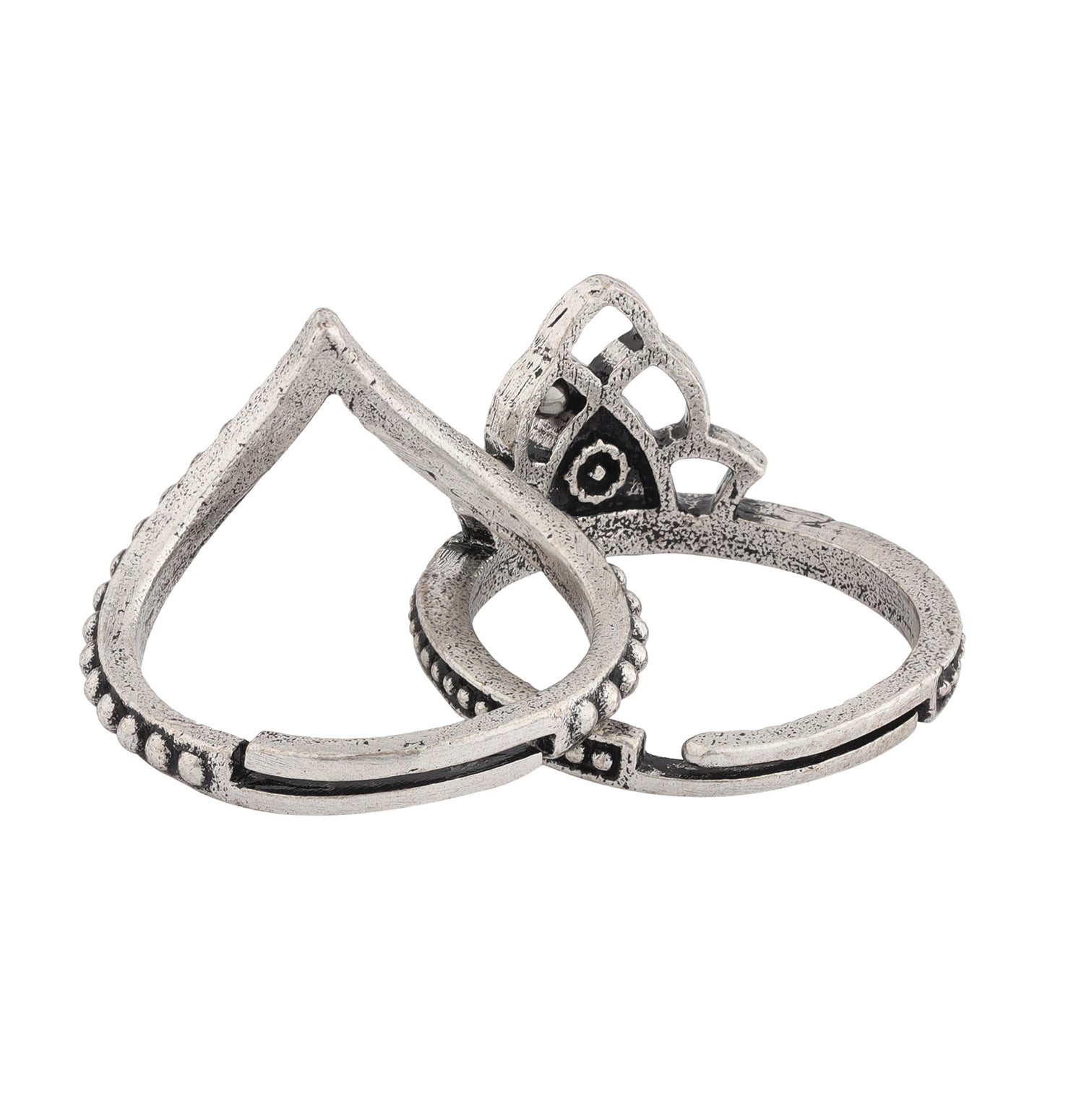 Boho Tribe Mystic Flora Oxidised Stackable Rings