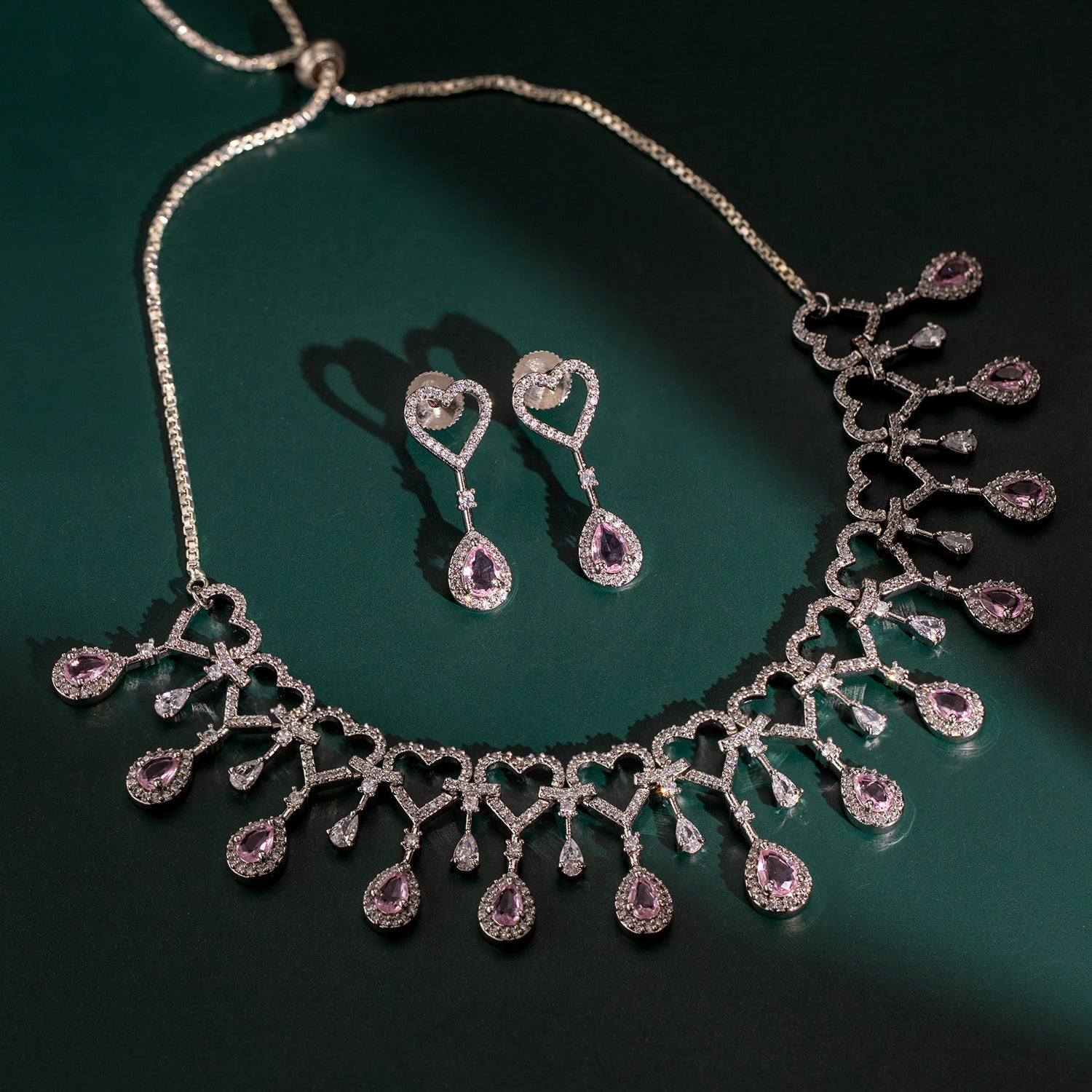 Forever More Pink Stones Enamelled Layered Necklace Jewellery Set