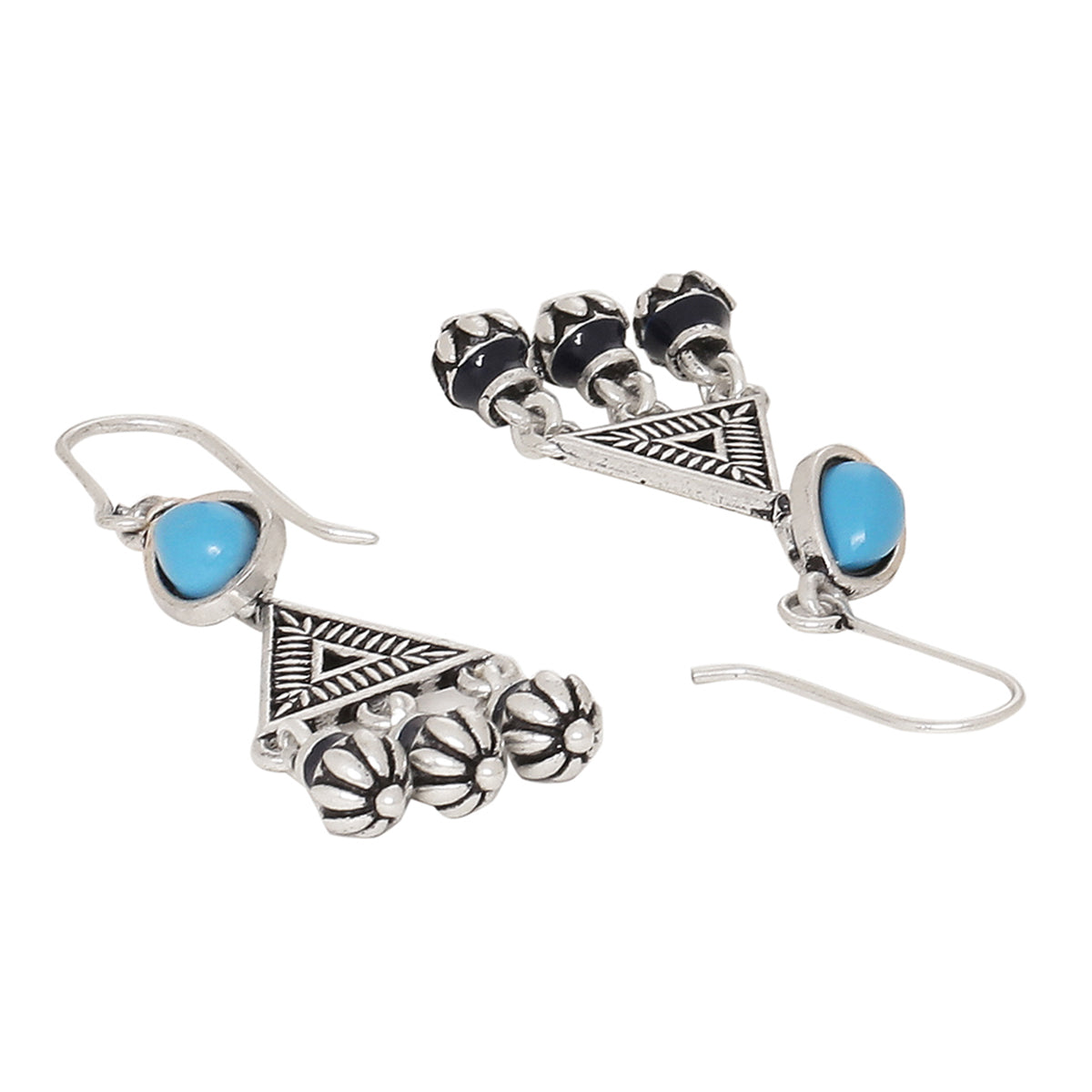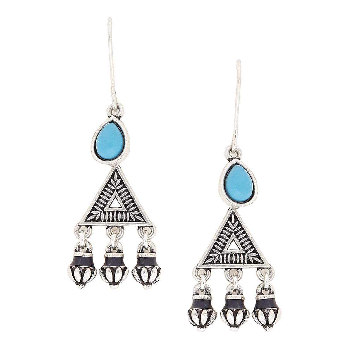 Lightly embellished triangles motif earrings inspired by mythology and related symbols. Made from brass and oxidised plated. Pair with ethnic attire.
