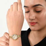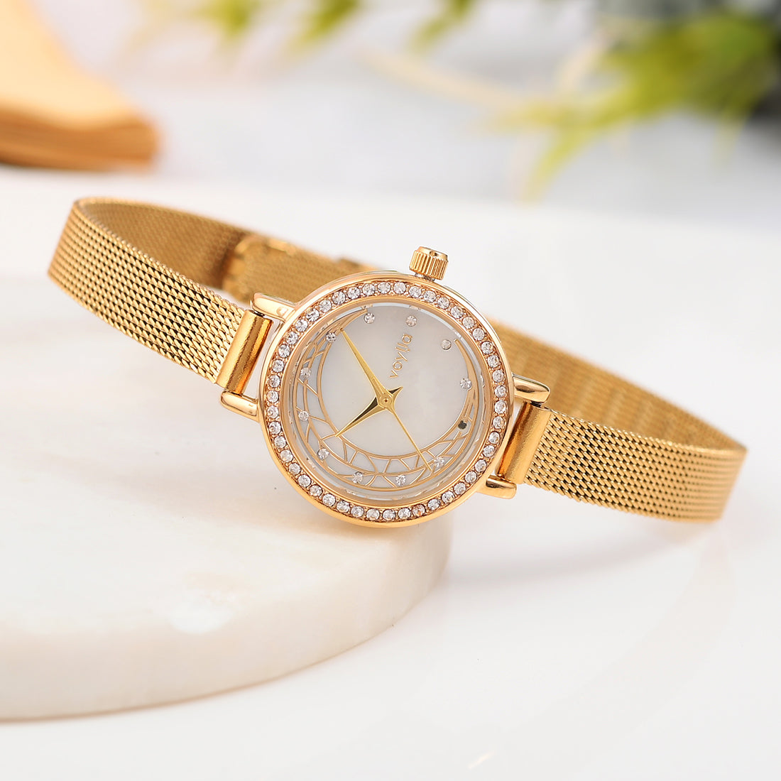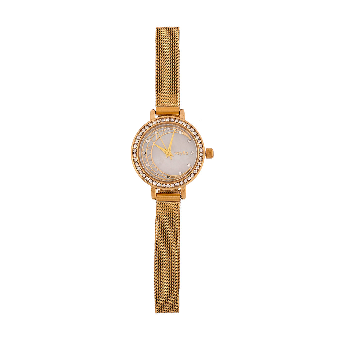 Gemstones studded dial analog watch with luxurious yellow gold plating. Made from brass and the perfect accessory to compliment formal attire.