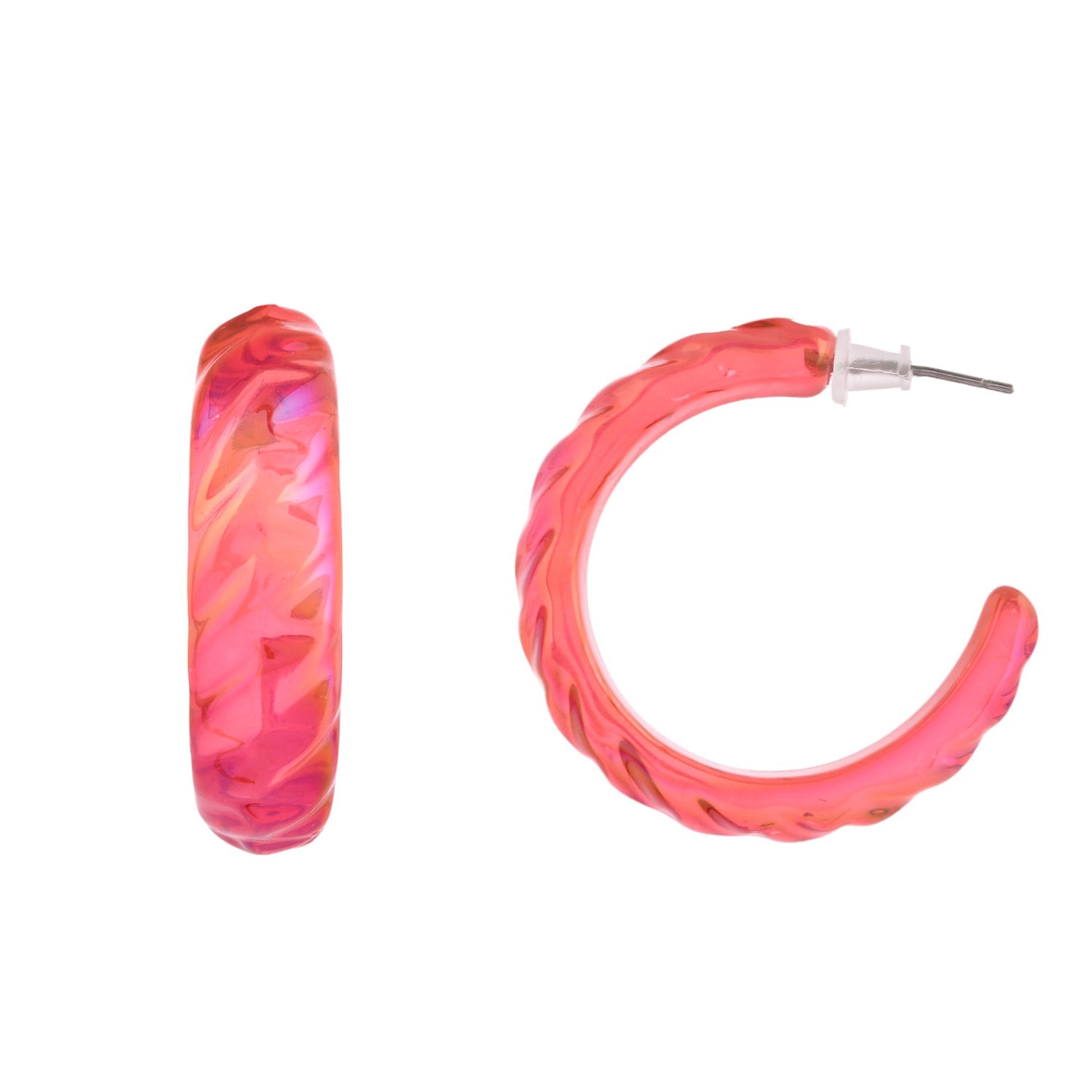 Resin Red Vibrant Hoop Earrings