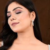 Discover the epitome of sophistication with these exquisite Voylla earrings for women. Crafted from premium brass and plated with radiant White Rhodium, these earrings are designed to captivate. The intricate pattern features a stunning array of American Diamonds, renowned for their exceptional sparkle and clarity. Perfect as a gift for wife, sister, or even as a gift for self, these earrings make an ideal present for Rakhi or any special occasion. The elegant design, with its teardrop centerpiece surrounded by a halo of smaller stones, leads to a cascade of diamond-studded strands that add dynamic movement and charm. Whether you’re looking for party wear earrings for women or a dazzling addition to your everyday collection, these american diamond earrings for women promise to elevate any ensemble with their timeless beauty.
