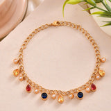 Give the perfect gift to your mother this Mothers Day with this exquisite bracelet.This beautiful bracelet features dazzling white CZ stones that complement the colorful charms, adding elegance to your outfit. The bracelet is made of high-quality brass and is plated with yellow gold to give it a luxurious look. The adjustable cuff design ensures that the bracelet will fit most wrist sizes comfortably.