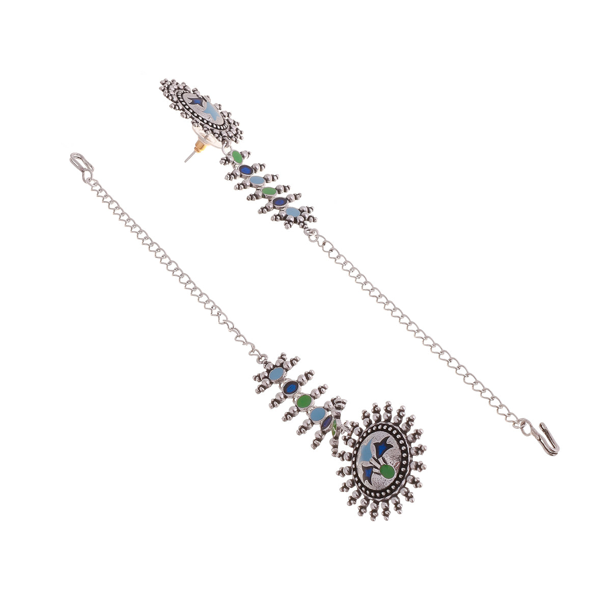 Apsara Enamelled Faux Kundan Silver Plated Stud Earrings