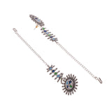 Stud earrings, fashioned out of quality brass into a delicate peacock motif. Embellished with faux kundan gemstones in a teardrop cut and enamelled details, the silver plated earrings are the perfect accessory to add instant sparkle to any outfit.Caring for...