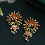 Apsara Enamelled Faux Kundan Silver Plated Stud Earrings