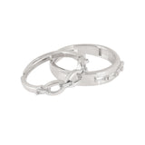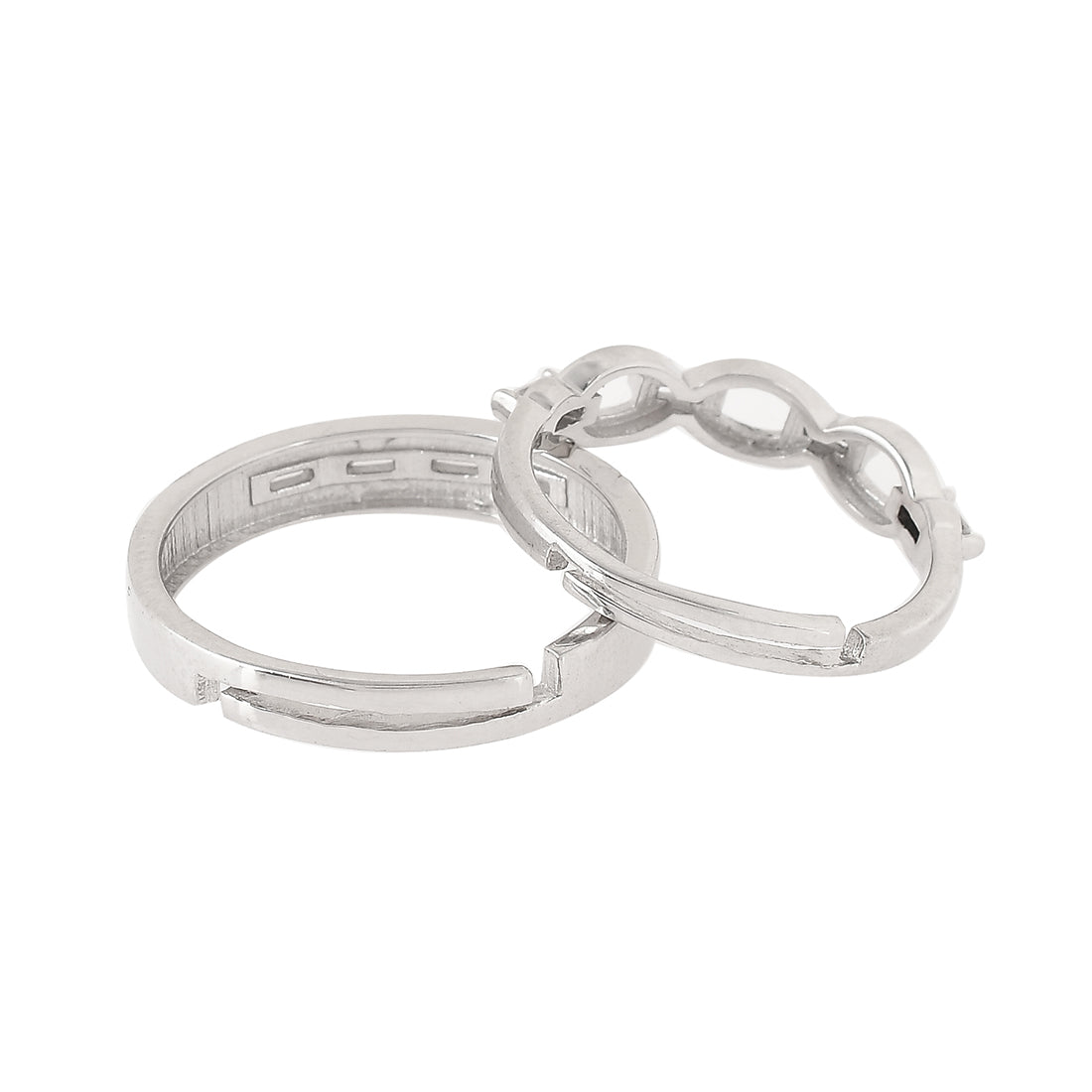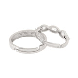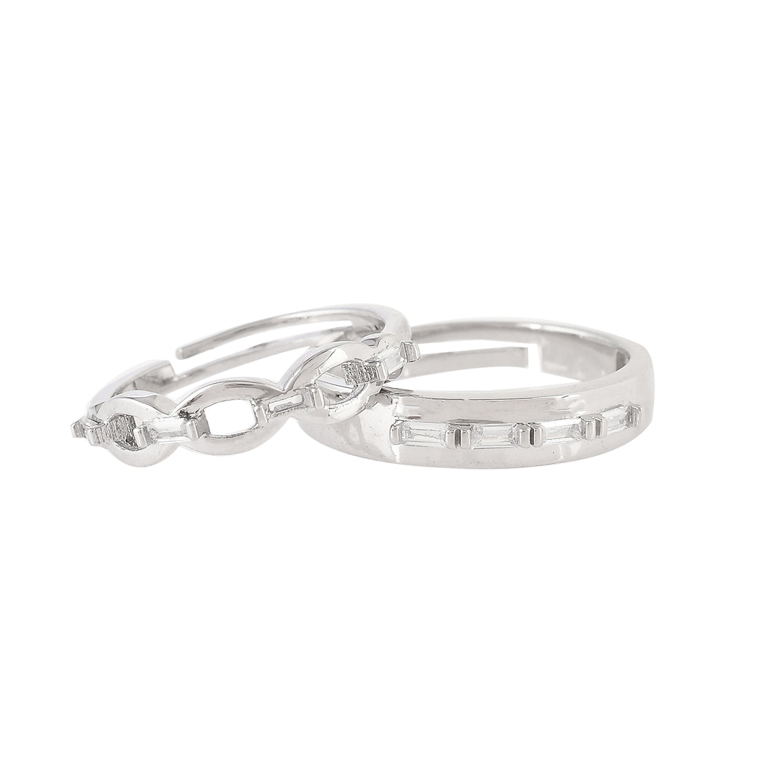 Add charm to your Valentine's Day celebrations with this beautiful 925 sterling silver couple link design band rings, which have been adorned with round cut silver zirconia gemstones. White rhodium plated and available in US sizes 6 and 10.