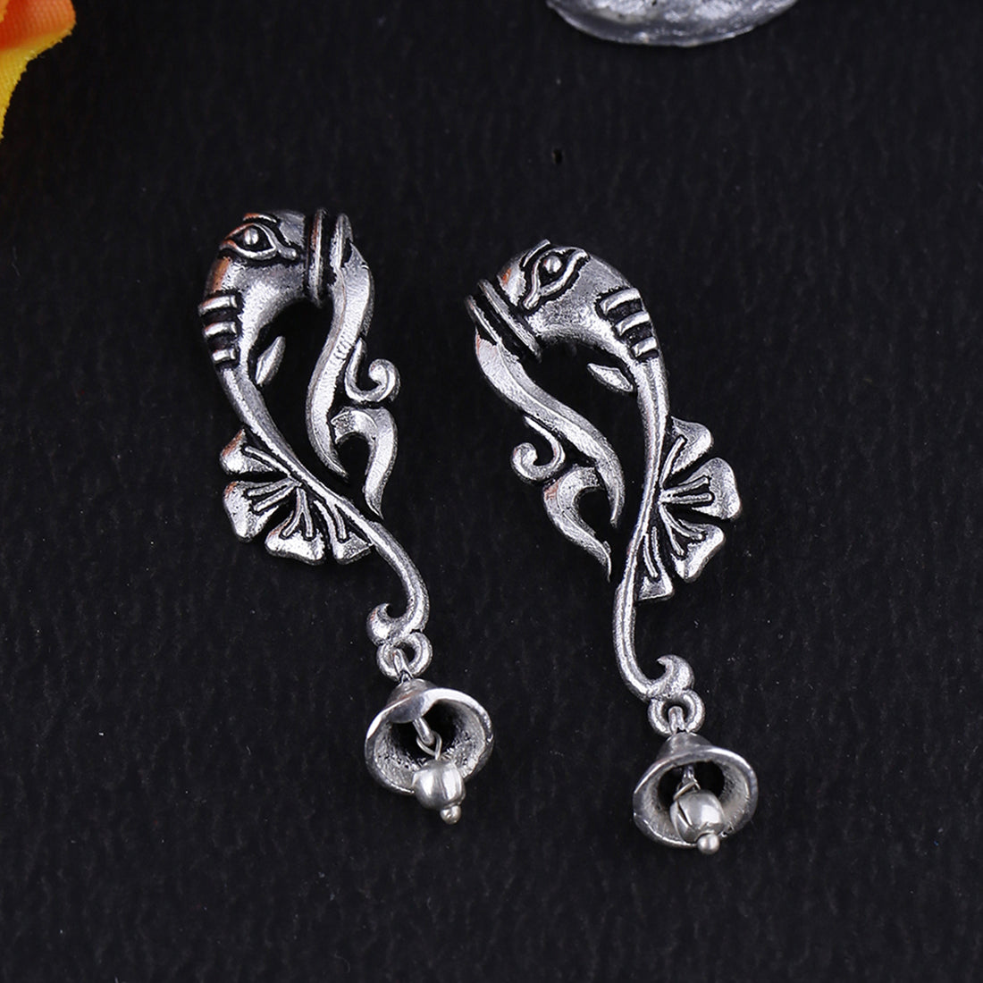 A touch of divine bliss and a spot of style, that's the essence of the Aarambh Vinayaka Bliss earrings. Crafted in premium brass, the trendy oxidised finish makes it a must-have accessory for festive days.
