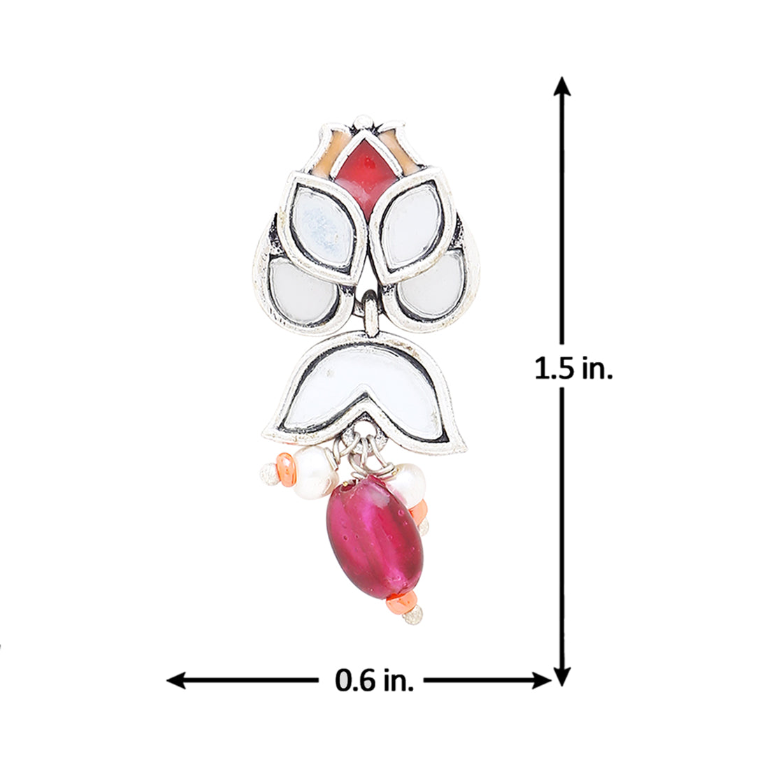 Colourful drop style earrings inspired by the art of block printing. Made from brass and silver plated. Wear with a casual kurta.Weight (Gms): 4.25Size (LxW)(Inch): 1.5*0.35Material: BrassPlating: Silver PlatingColor: SilverSales Package: 2 EarringsProduct Code: 8907617929590