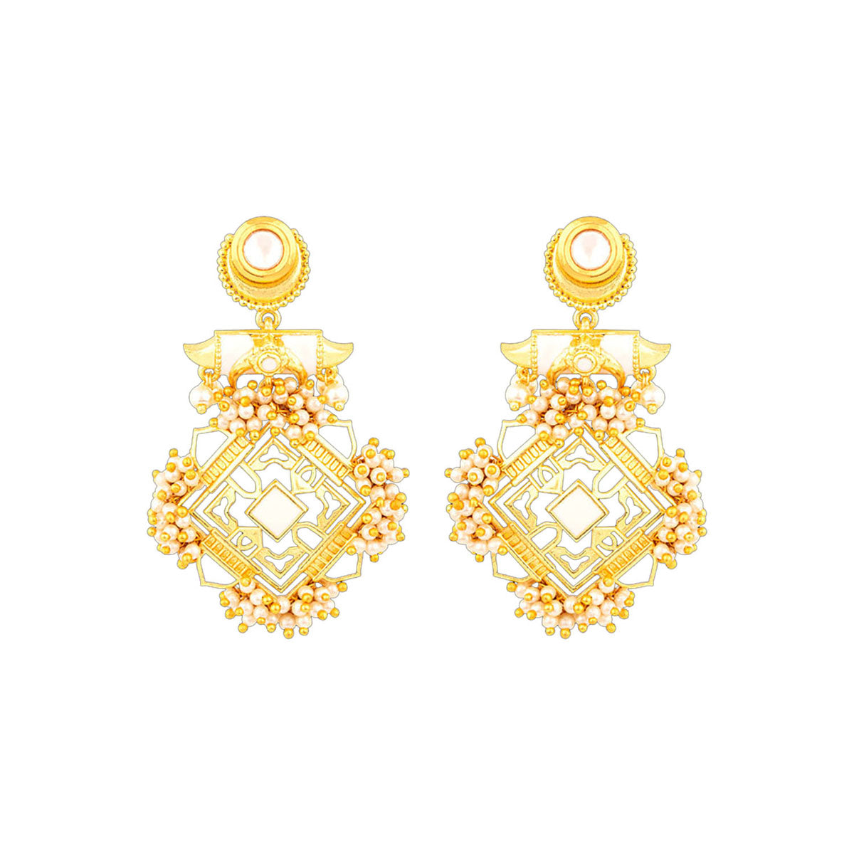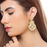 Antique style drop earrings inspired by the era of queen Lakshmibai. Made from brass and yellow gold plated. Good for formal ethnic looks. This piece of jewelry comes with the Voylla assurance of quality and durability.