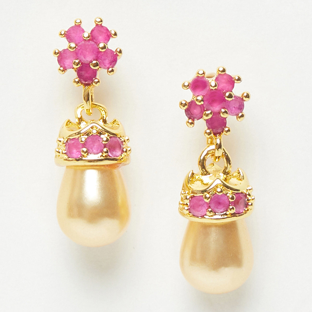 Earring Pair Studded With Sparkling CZ & Pearl Beads