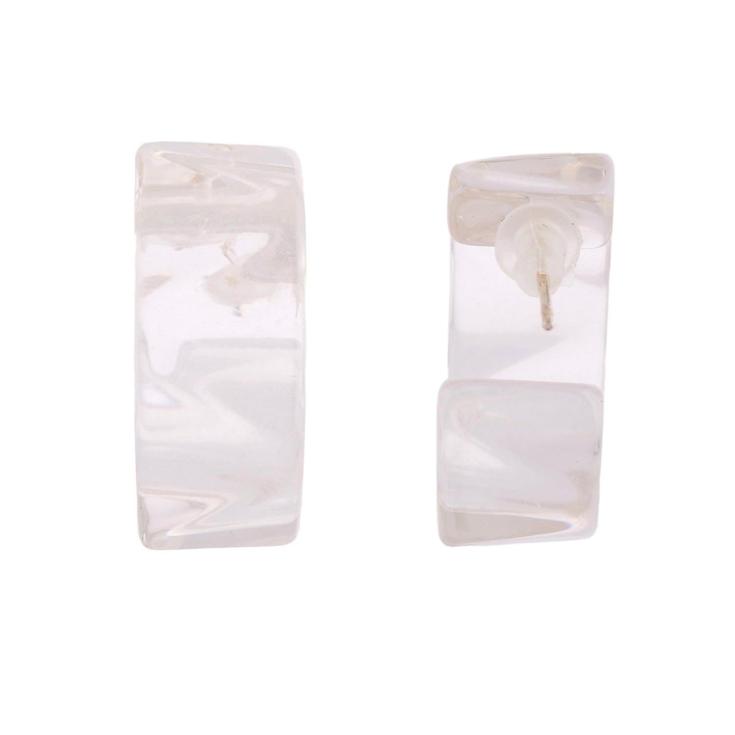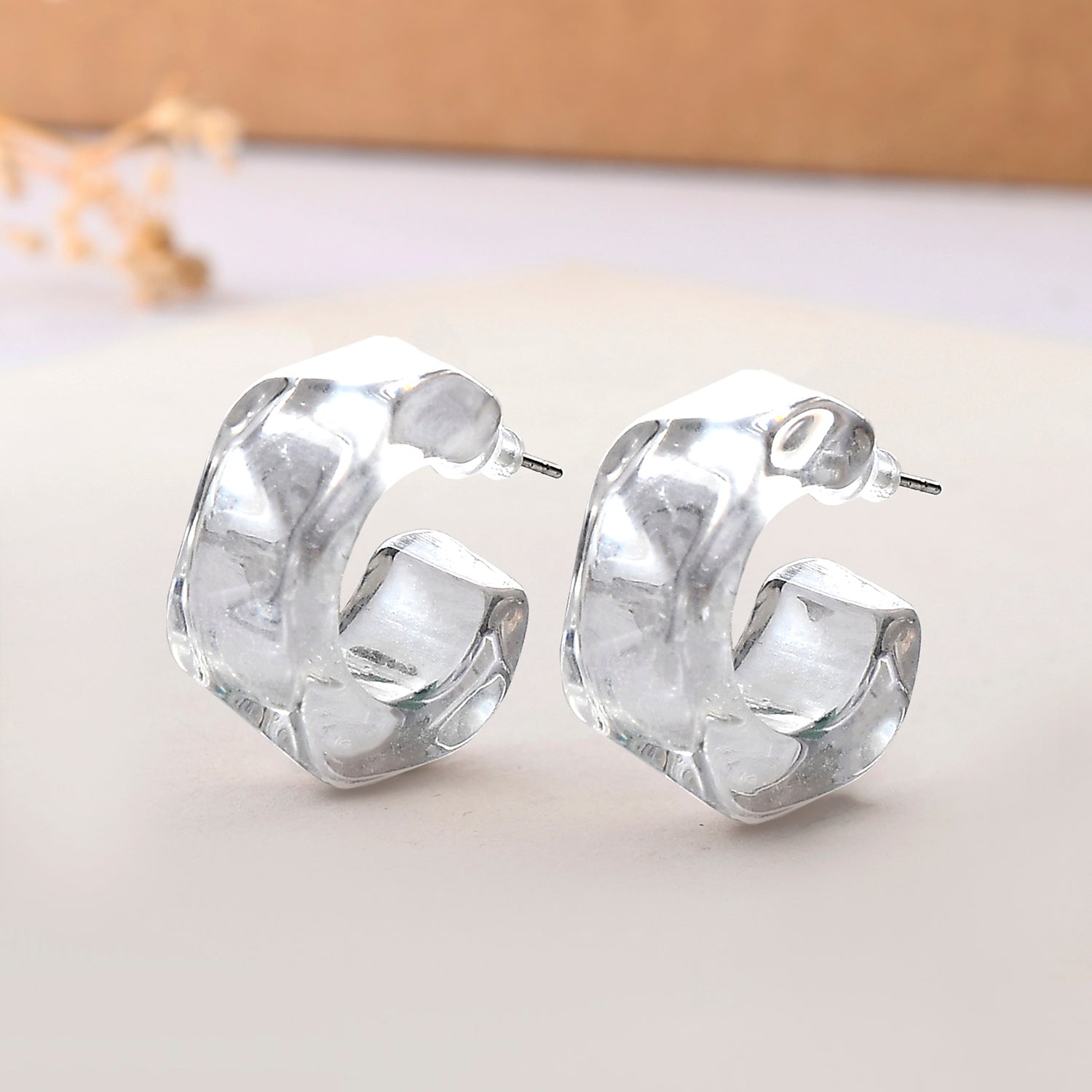 Crafted with premium resin material, these earrings boast a translucent appearance with a hint of iridescent color,a subtle yet captivating charm. The smooth curve and open hoop design exude sophistication and modernity, making them perfect for any outfit or event.Whether...