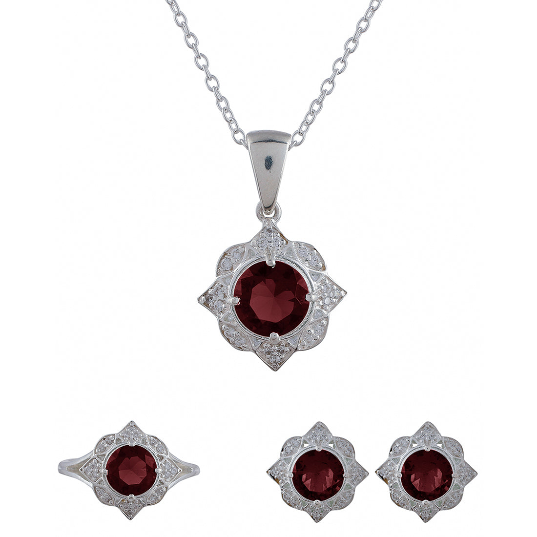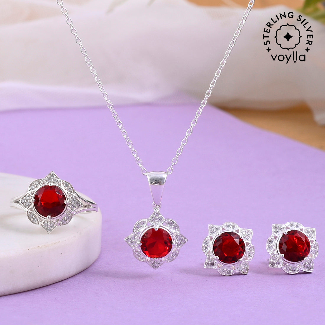 925 Sterling Silver Box Set with Shimmering Red CZ Stones