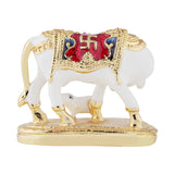 Voylla's exquisite cow festive idols are meticulously crafted from premium resin, showcasing intricate detailing and vibrant colors. The idols feature a serene cow adorned with golden and white hues, exuding a divine presence. The detailed craftsmanship highlights delicate features such as the cow's peaceful expression and ornate patterns on its body. Ideal for Diwali, Rakshabandhan, and other festive occasions, these cow idols add a touch of elegance and spirituality to your home decor. Perfect for pujas, parties, and gifting, they are ideal for family, friends, sisters, mothers, or colleagues. Celebrate the festive season with these beautiful Voylla cow idols, bringing blessings and joy to your loved ones. Perfect as gifting articles, these showpieces bring warmth and festivity to any home decor.