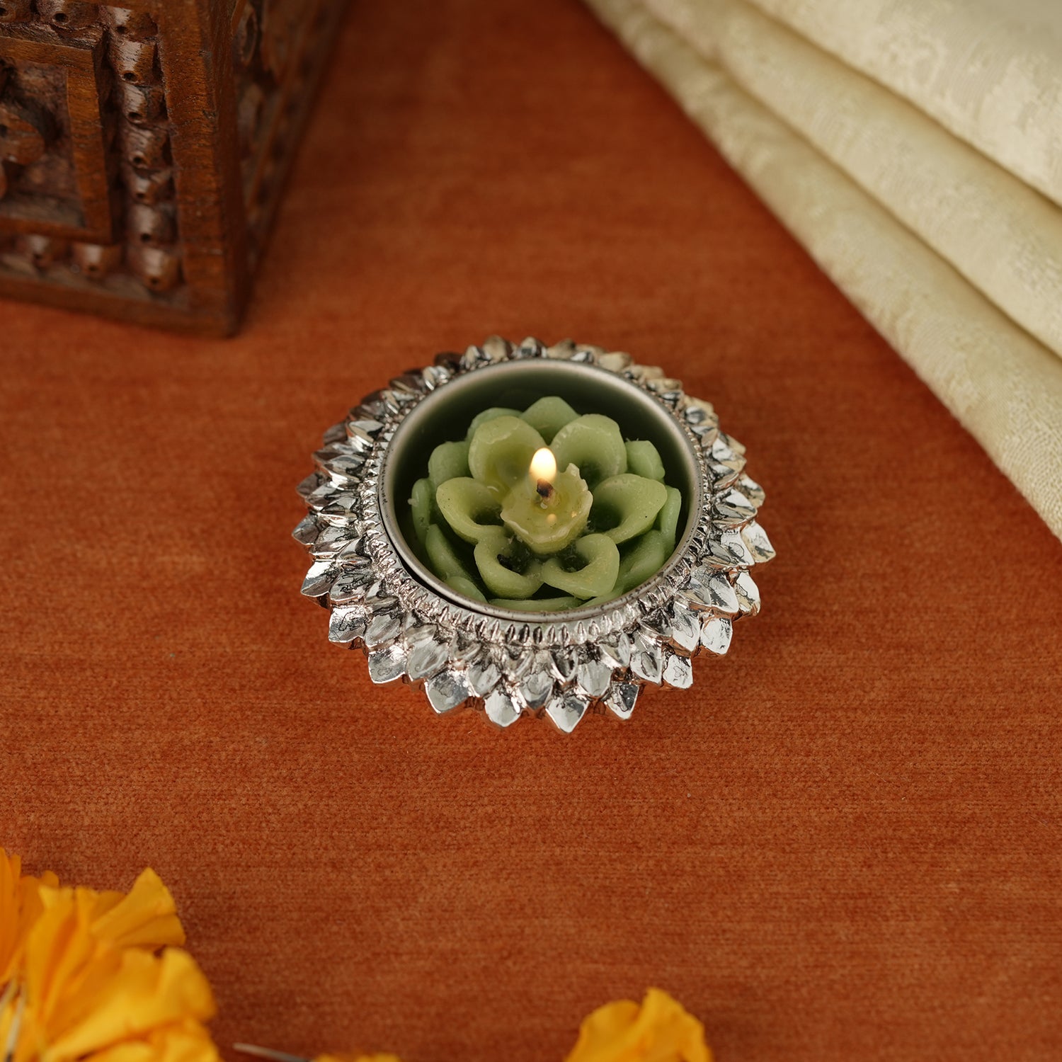 Voylla's stunning tealight holder, crafted from premium resin, is designed to elevate your festive decor. This exquisite showpiece features intricate floral patterns and vibrant colors, with gold and red accents bringing a touch of festive elegance. The design includes a beautifully crafted base that holds the tealight securely, making it perfect for Diwali, Rakshabandhan, and other celebrations. Ideal for pujas, parties, and as a Diwali gift, this tealight holder embodies the spirit of festivity. Its artistic design and radiant glow make it a standout addition to any home decor, making it an ideal gift for family, friends, sisters, mothers, or colleagues. Illuminate your festive moments with this elegant Voylla tealight holder, spreading warmth and joy.
