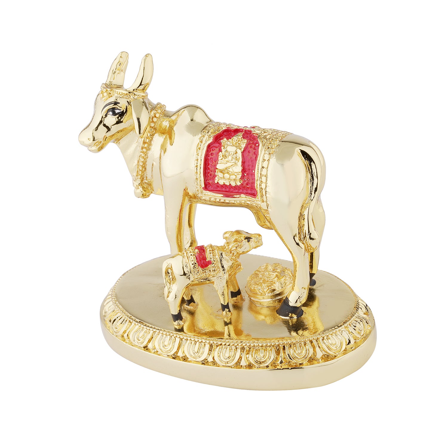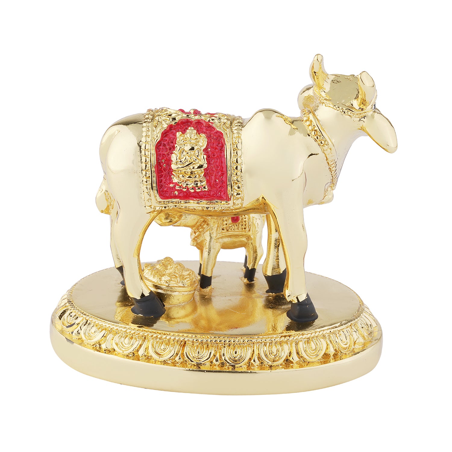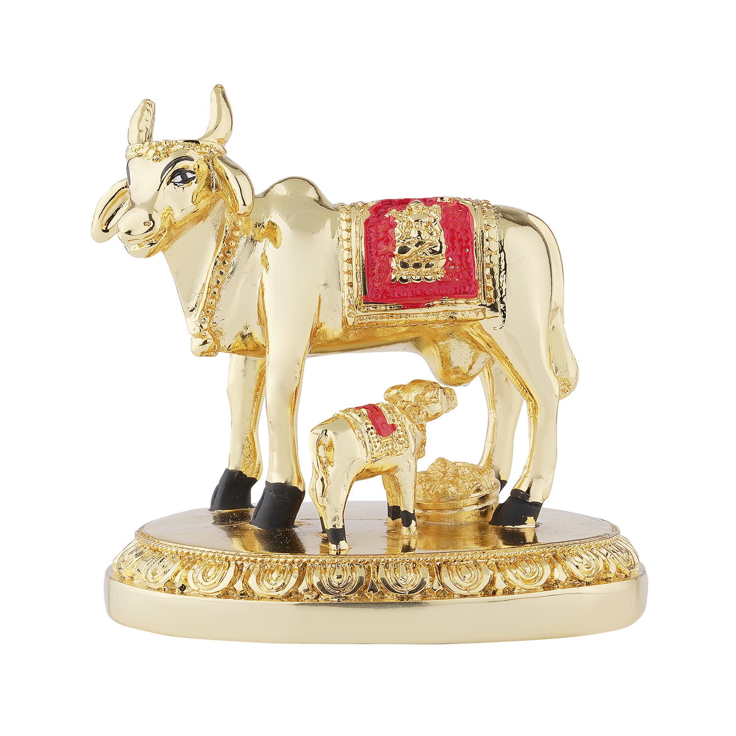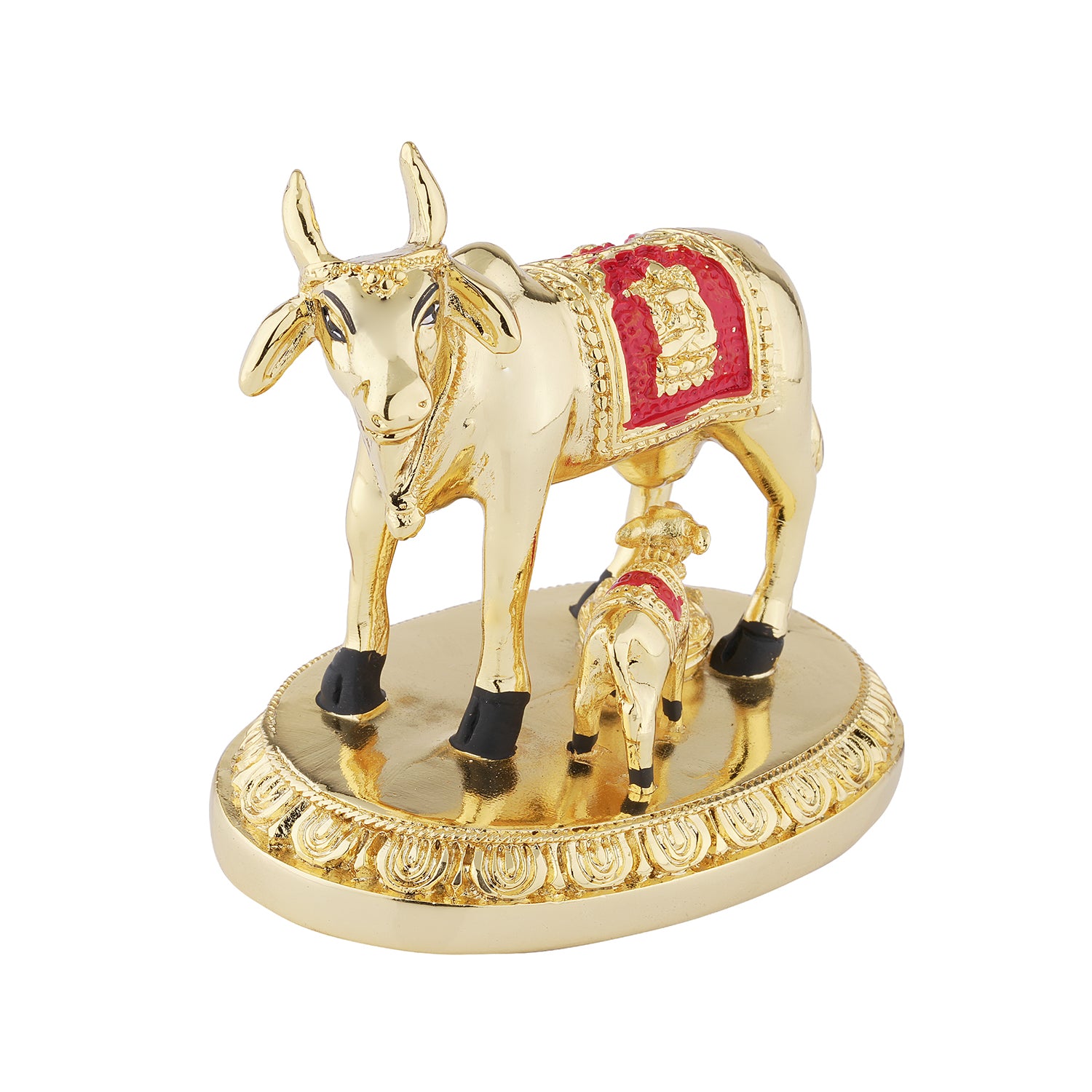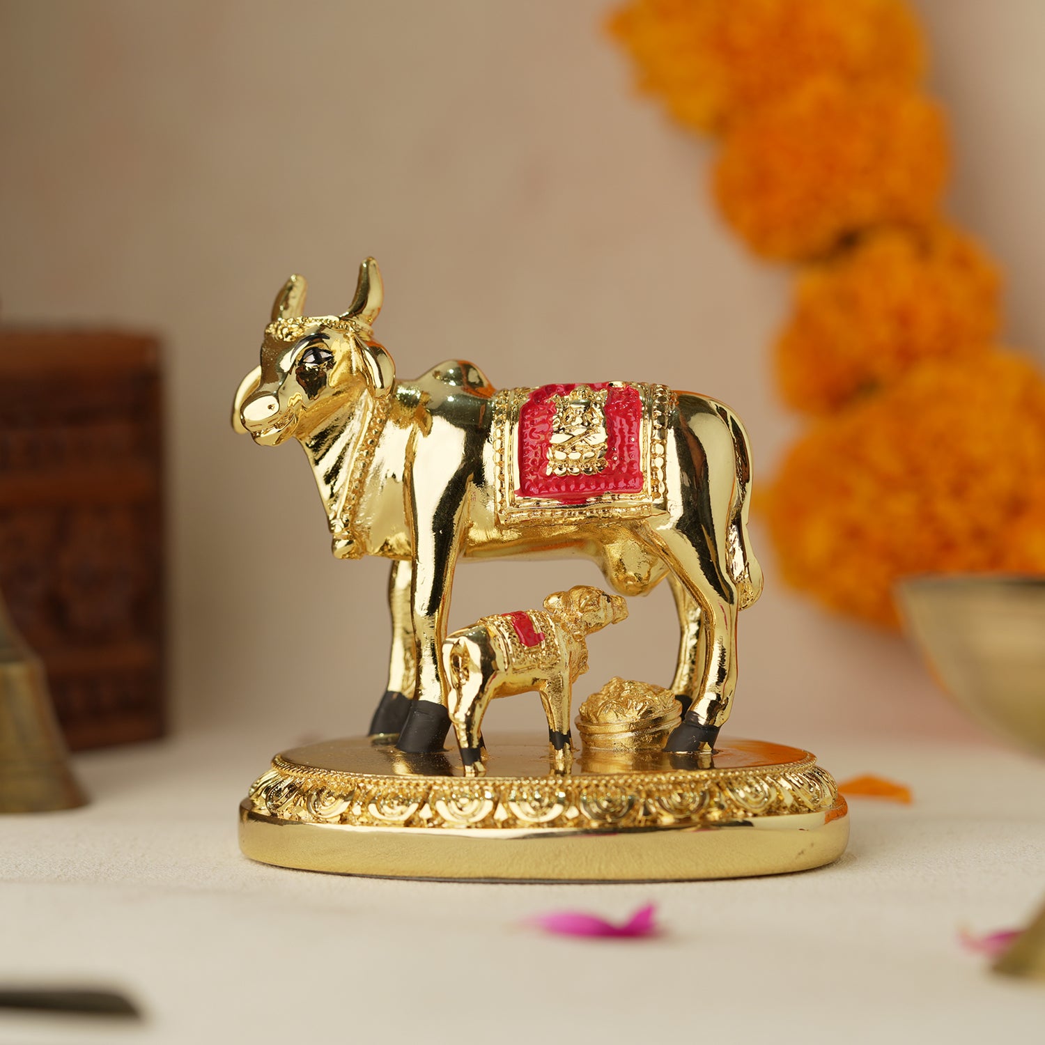 Voylla's stunning cow and calf festive idols are meticulously crafted from premium resin, capturing the essence of this divine bond with intricate detailing. The idols feature vibrant colors—often a mix of serene whites, warm golden accents, and earthy tones—adding a touch of elegance to any festive decor. The cow and calf are depicted with lifelike expressions, adorned with delicate embellishments that highlight their serene beauty. Ideal for Diwali, Rakshabandhan, and other festive occasions, these idols enhance the spirituality and elegance of your home decor. Whether for pujas, parties, or as thoughtful gifts for family, friends, sisters, mothers, or colleagues, these Voylla idols embody the spirit of celebration. Perfect as gifting articles, these showpieces bring warmth and joy, illuminating your home with festive charm.