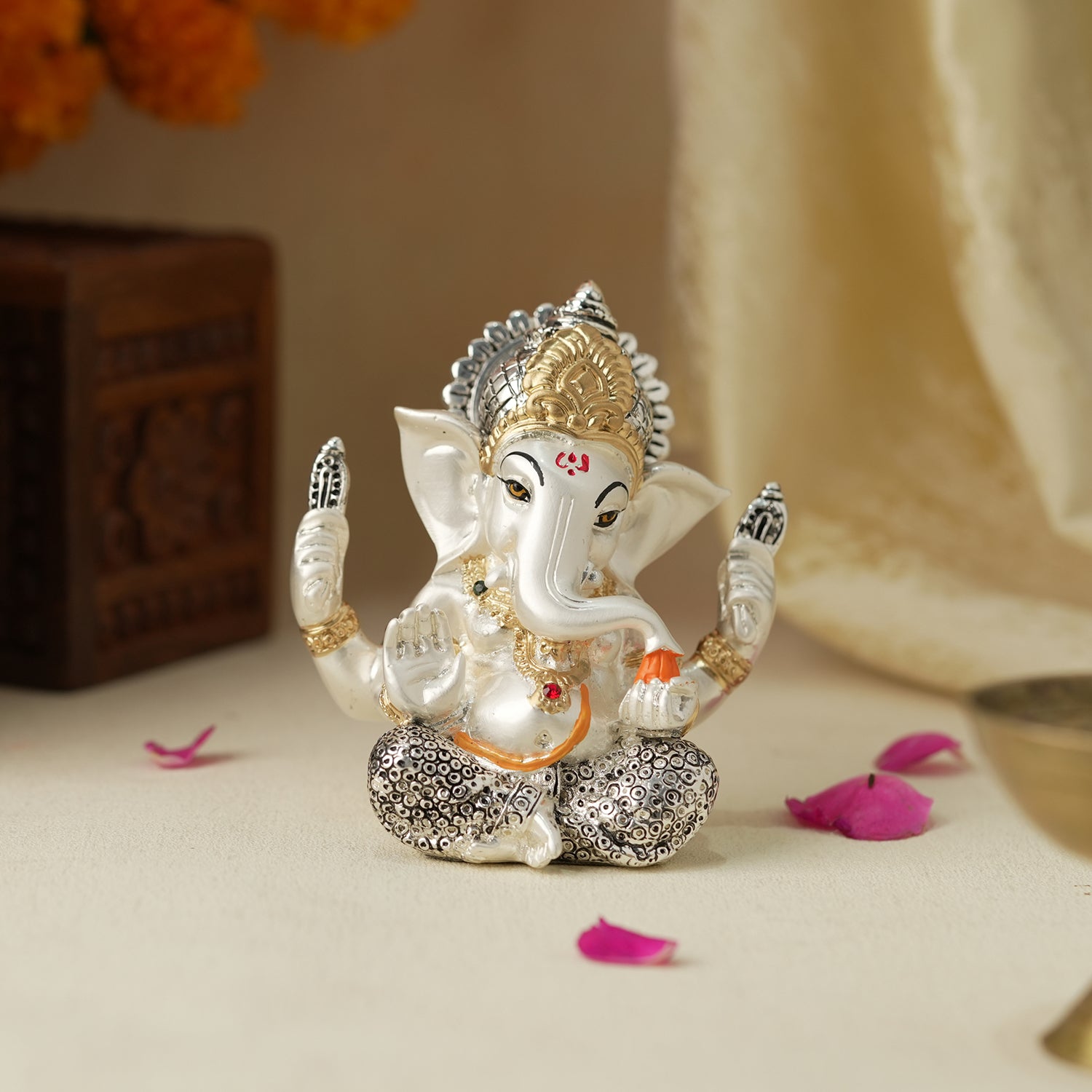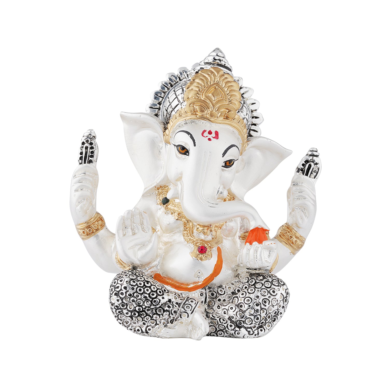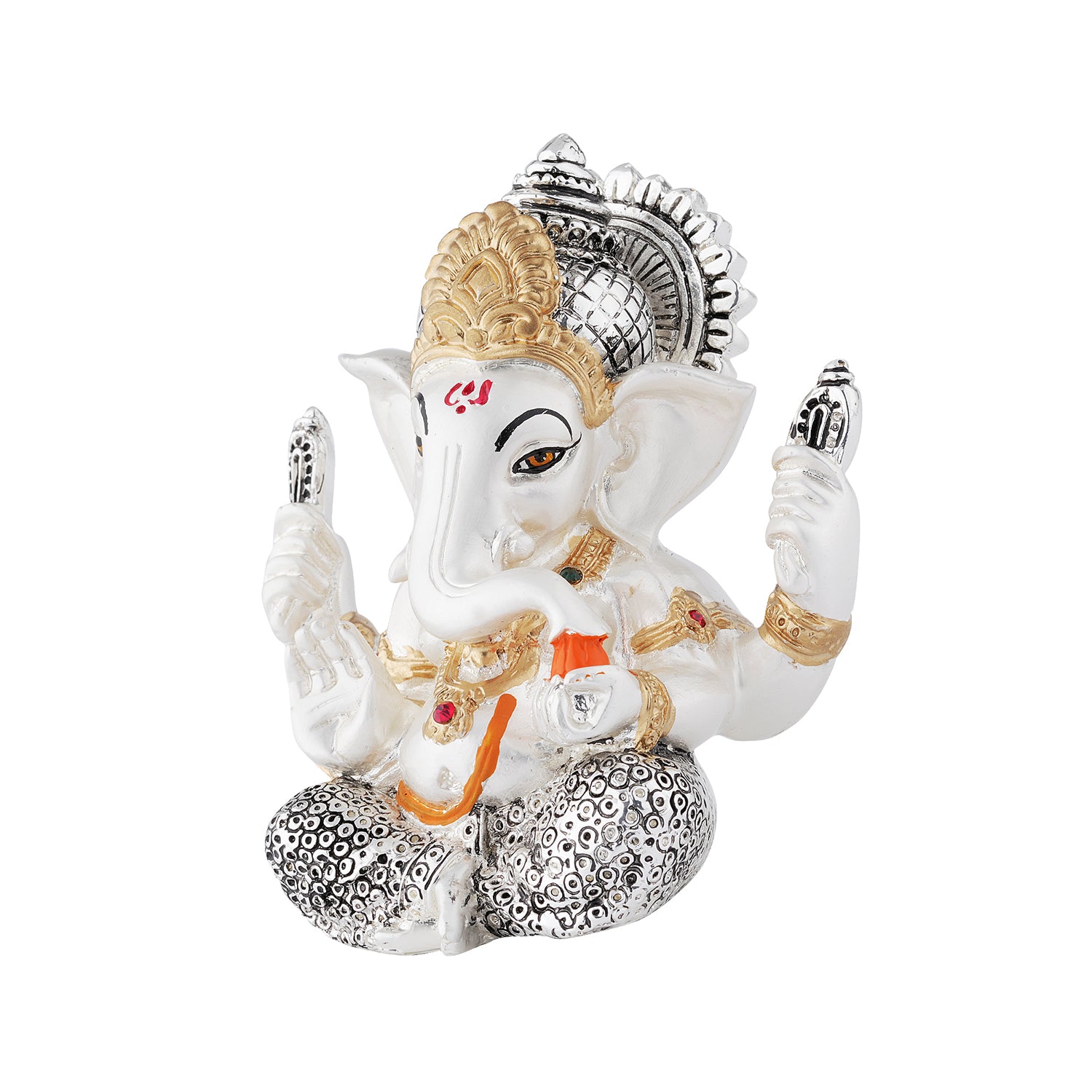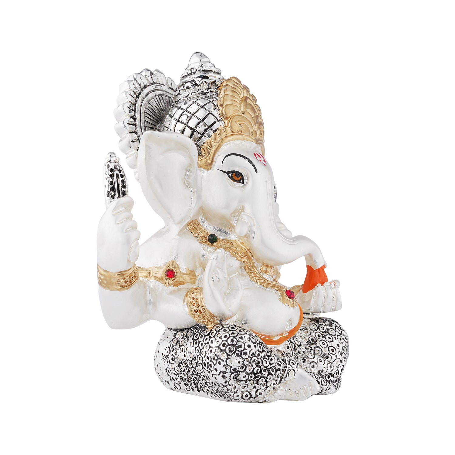Enhance your festive celebrations with Voylla's beautifully crafted Lord Ganesha idols, made from high-quality resin material. The idol showcases a serene Ganesha seated with meticulous detailing, including a finely adorned headdress and jewelry, and a calm, welcoming expression. The rich, deep hues of gold and white bring out the regal and sacred nature of the deity, while the detailed embellishments add to its overall charm. Perfect for Diwali, Rakshabandhan, and other festive occasions, these idols add a touch of elegance and spirituality to your home decor. Their intricate craftsmanship and vibrant hues make them a stunning addition to any setting, ideal for pujas, parties, and gifting. Whether you're looking for a Diwali gift for family, friends, sisters, mothers, or colleagues, these Voylla Ganesh idols are the ultimate choice.
