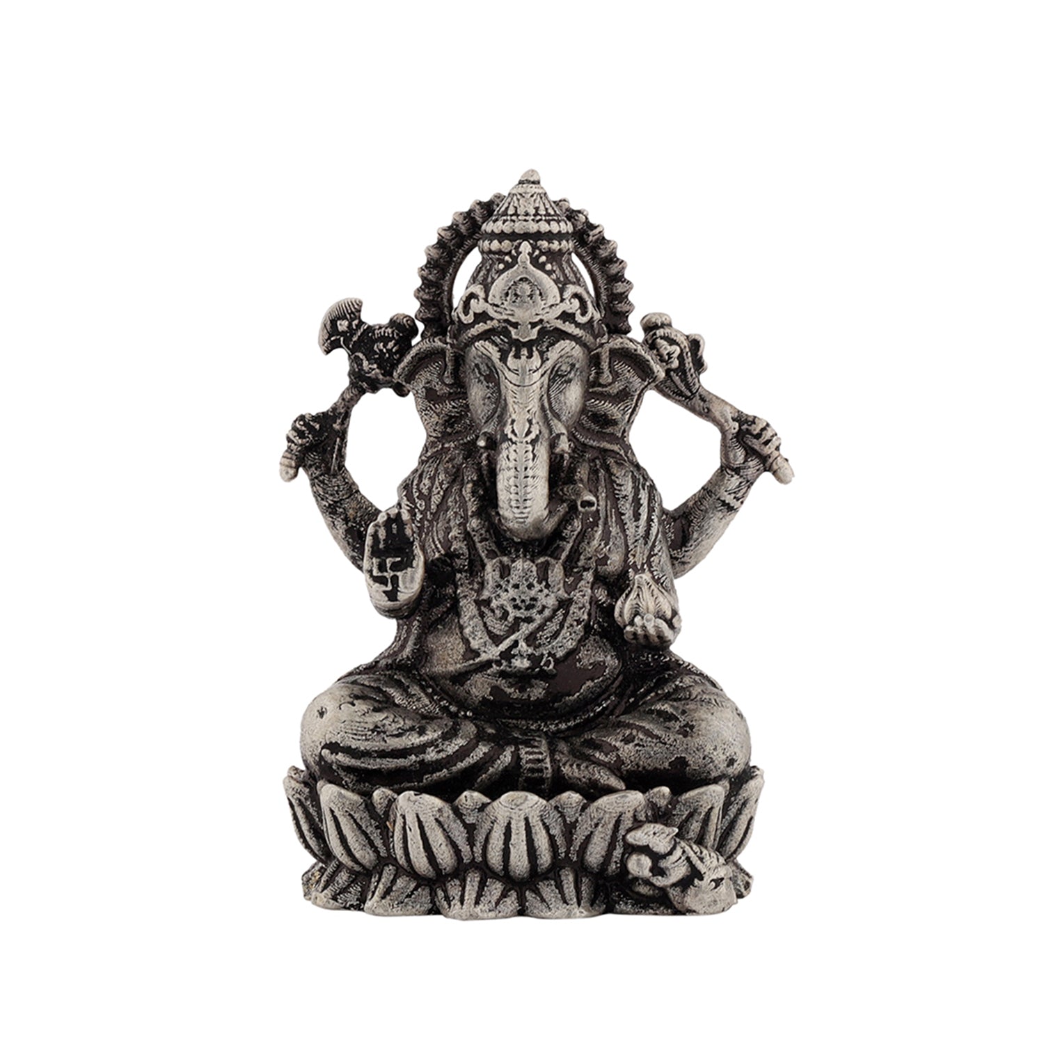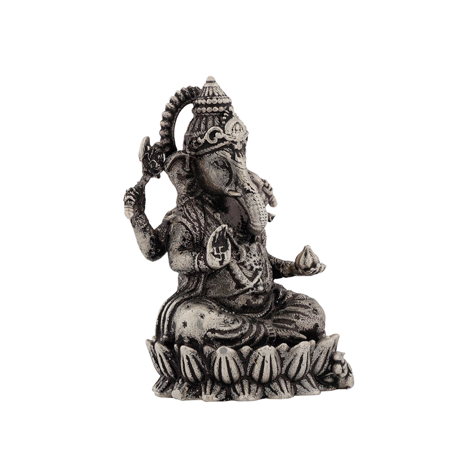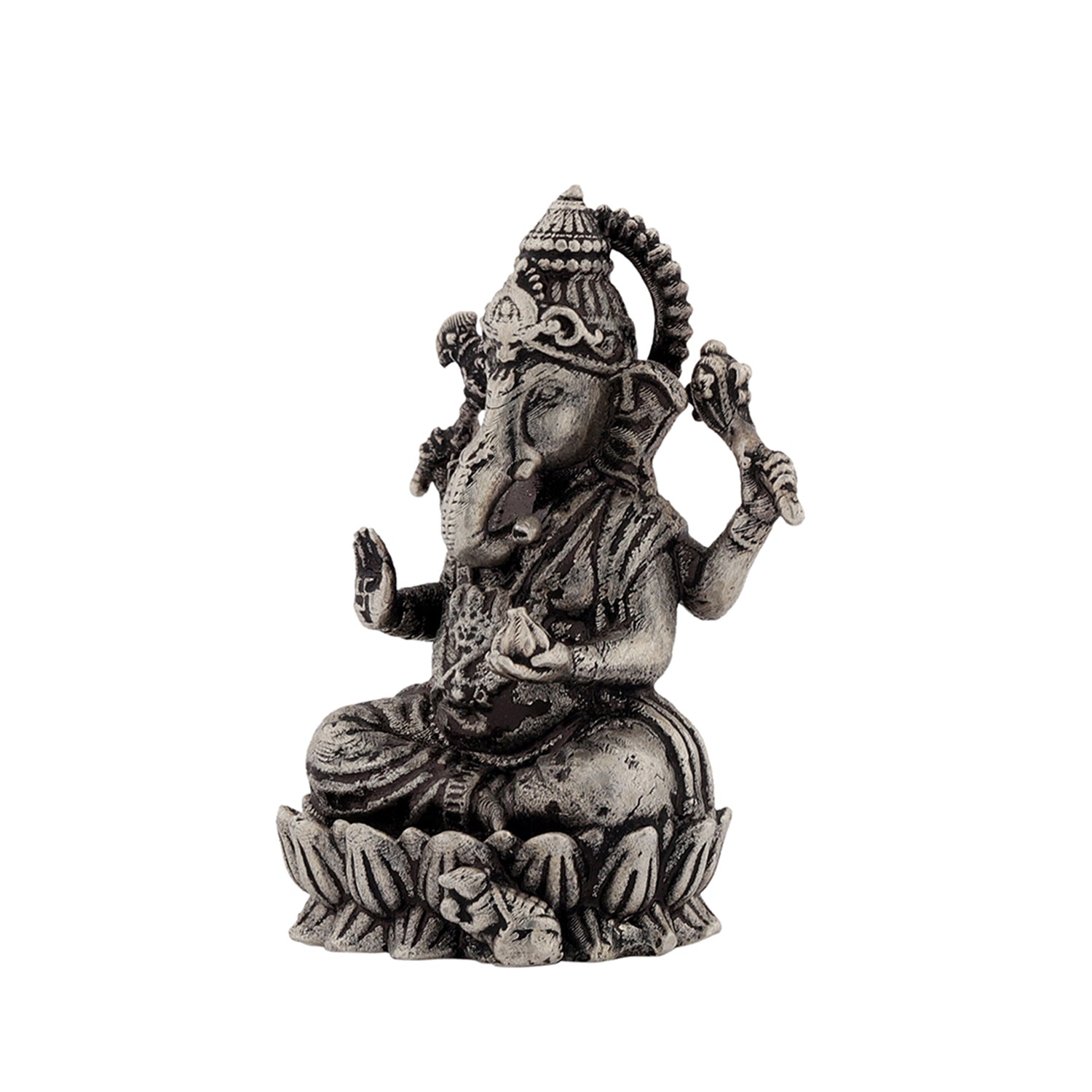 Embrace divine blessings with the Voylla 92.5 oxidised silver Ganesha idol, finely handcrafted in pure sterling silver with an antique oxidised finish for a timeless look. Weighing 11 grams, this intricately designed murti of Lord Ganesh seated on a lotus symbolizes wisdom, prosperity, and success. Perfect for daily pooja rituals, Diwali celebrations, Dhanteras, Navratri, Grihpravesh, and housewarming ceremonies, this compact yet powerful idol is an auspicious addition to your home temple, office desk, or festive décor. Known as the remover of obstacles, silver Ganesh idols hold immense spiritual value, making them a meaningful and everlasting silver gift for weddings, anniversaries, corporate gifting, and festive occasions. Its lightweight design, oxidised detailing, and authentic 92.5 sterling silver purity make it both a sacred keepsake and a premium gifting choice.