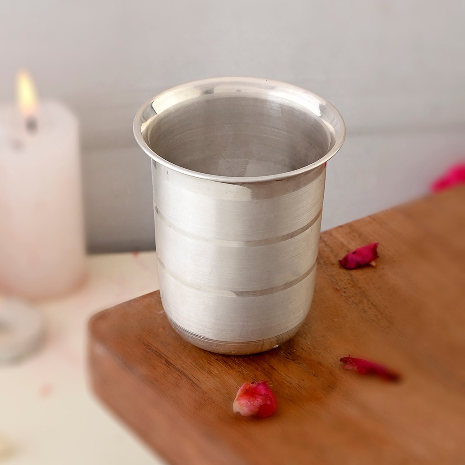 Crafted in authentic 92.5 sterling silver, the Voylla pure silver glass (21 gm) combines tradition with elegance, making it an essential for both everyday rituals and special occasions. Silver glasses are highly revered in Indian households for their health benefits and cultural significance, making this piece ideal for baby feeding, annaprasan (first rice ceremony), naming ceremonies, and childbirth gifting. It is equally perfect for daily pooja use, temple offerings, weddings, anniversaries, housewarming, and festive occasions like Diwali and Dhanteras. Known for its durability and purity, this silver glass is a thoughtful and timeless auspicious gift for loved ones, carrying blessings of prosperity, health, and positivity. Its elegant shine and premium finish make it a cherished keepsake for generations, suited for those looking for silver pooja items, silver baby gifts, and traditional gifting essentials.