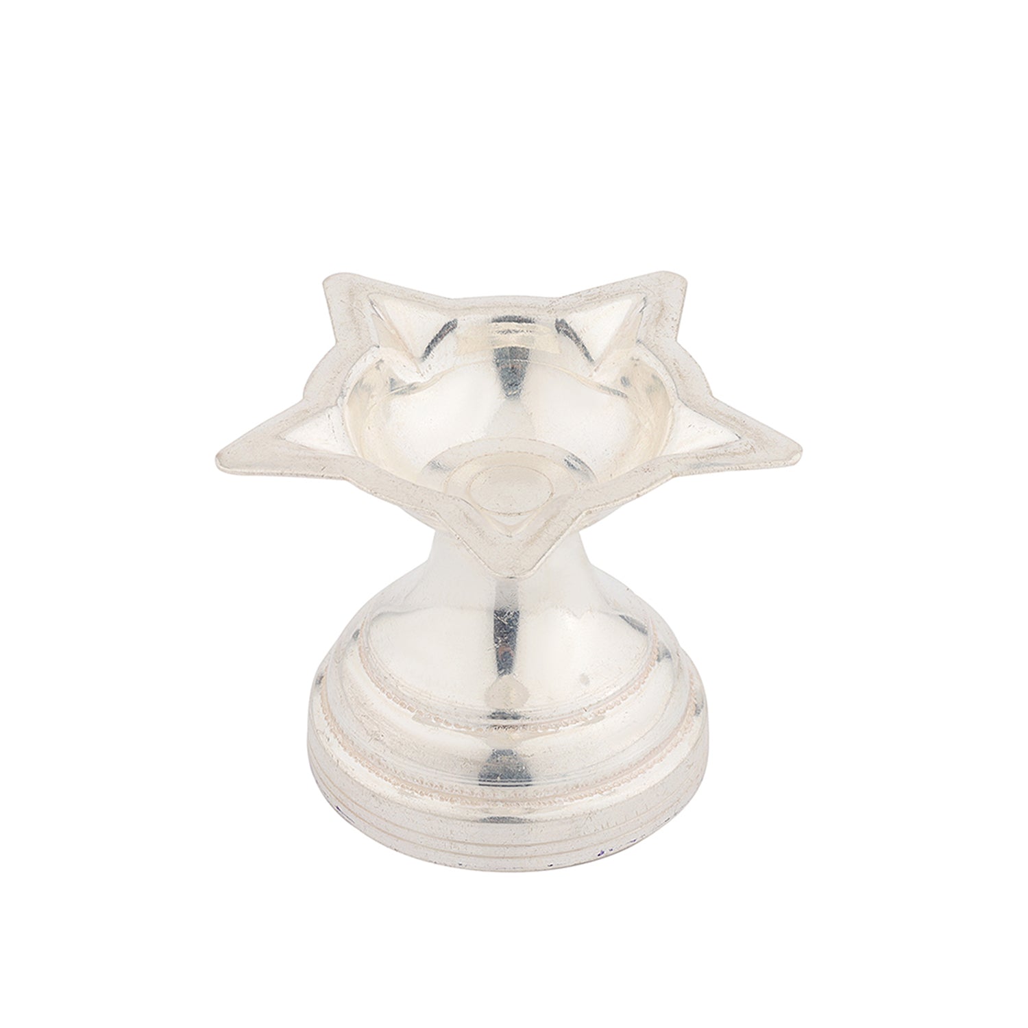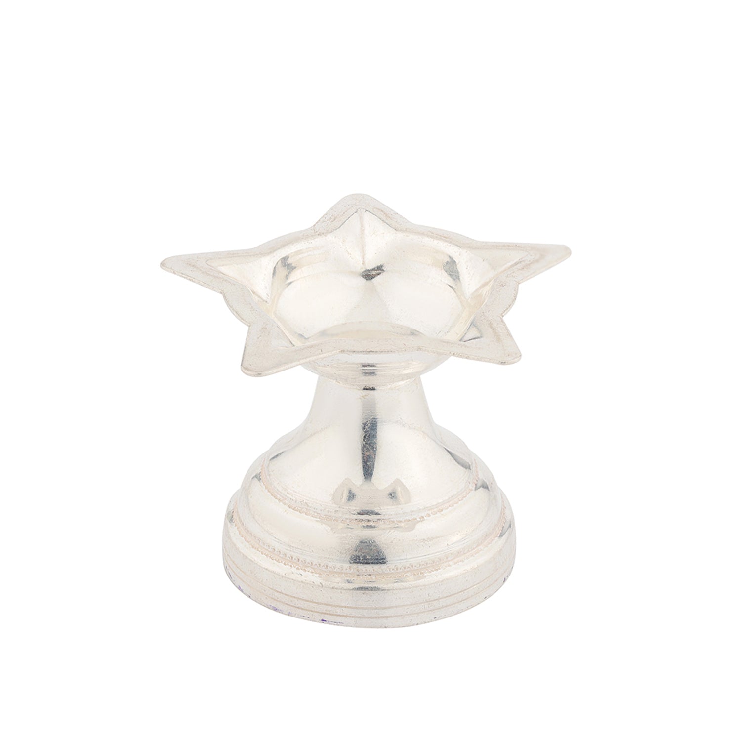 Light up your celebrations with the Voylla 92.5 sterling silver diya, crafted in a star-shaped design with a sturdy base for daily pooja and festive rituals. Made from hallmarked sterling silver, this diya is perfect for Diwali puja, Navratri aarti, Dhanteras, Karwa Chauth, housewarming ceremonies, weddings, and temple offerings. Known to symbolize purity and prosperity, silver diyas hold a special place in Indian traditions, making them a sacred choice for home temples, pooja thalis, and festive décor. This elegant diya not only enhances spiritual ambience but also serves as a meaningful silver gift for weddings, grihpravesh, anniversaries, and festive occasions. Durable, easy to maintain, and timeless in design, this sterling silver diya is a must-have for those seeking authentic silver pooja items, silver gifting articles, and auspicious silver décor.