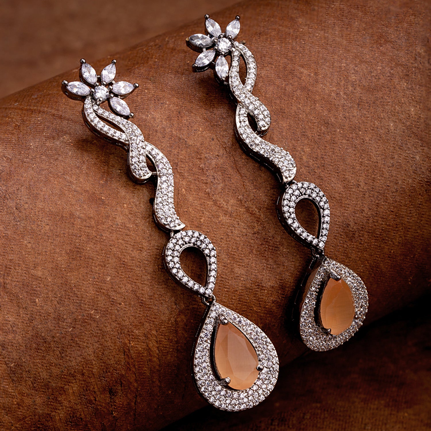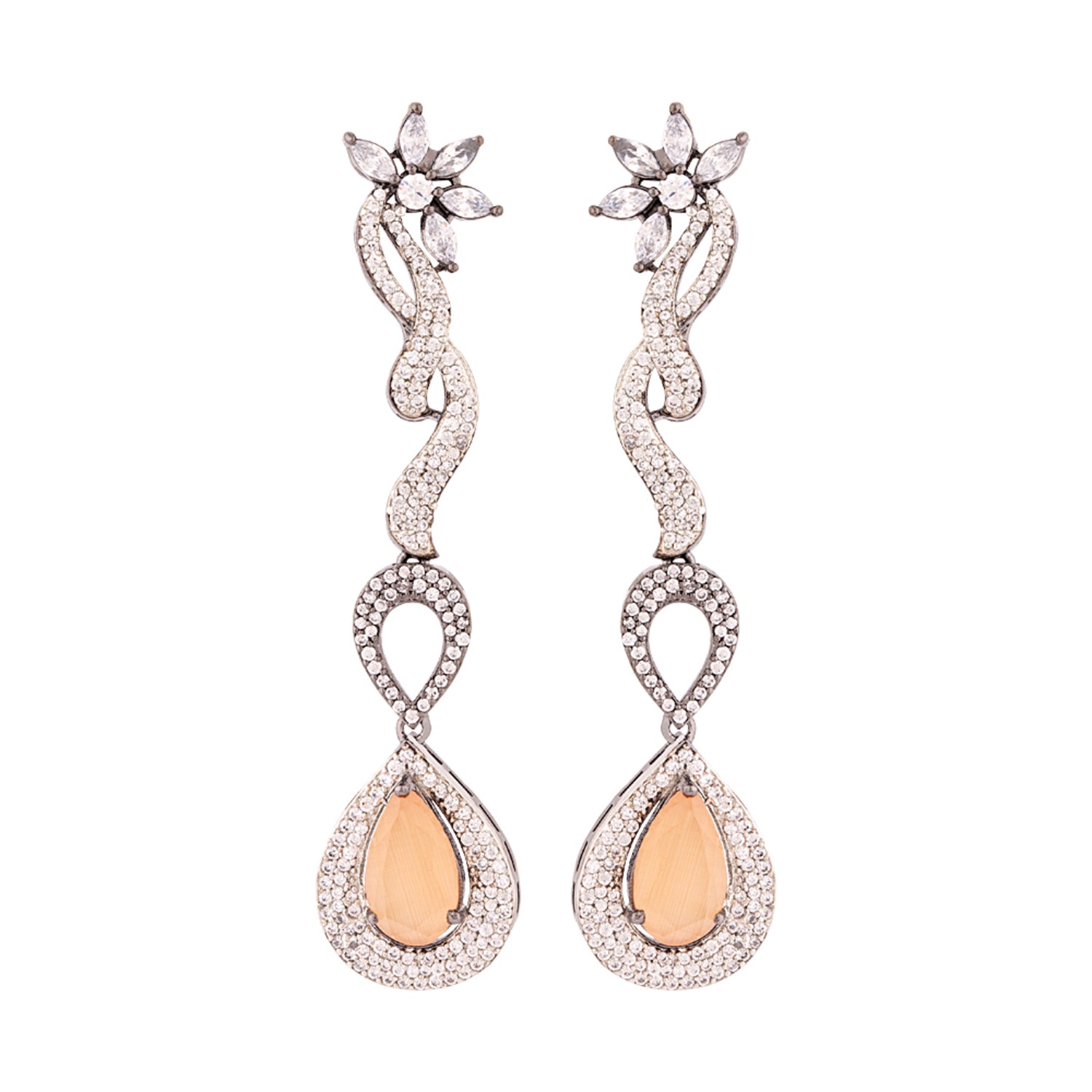 Brass zircon gemstones embellished earrings with black rhodium plating. Pair with formal looks. This piece of jewelry comes with the Voylla assurance of quality and durability. Caring for your fashion jewelry: We, at Voylla, take care of every piece of...