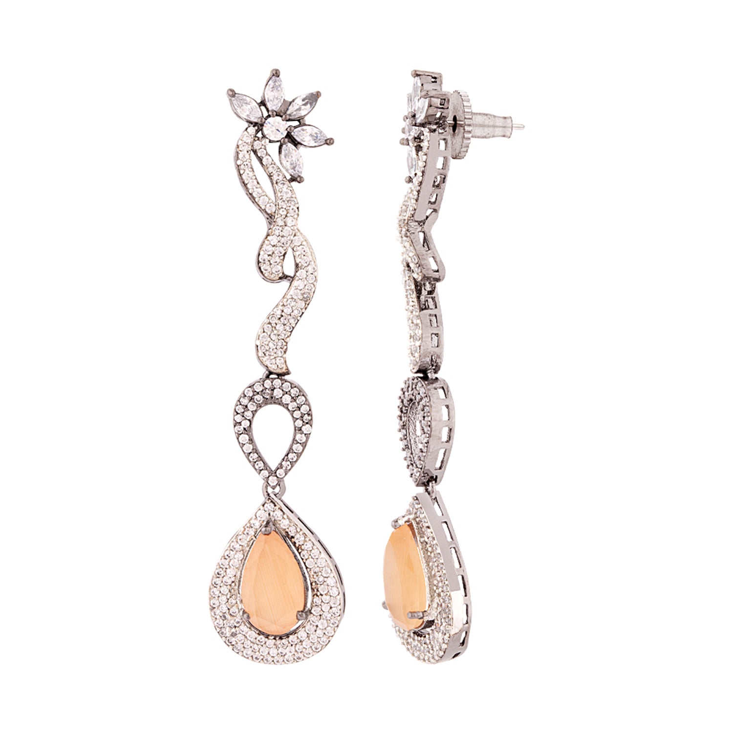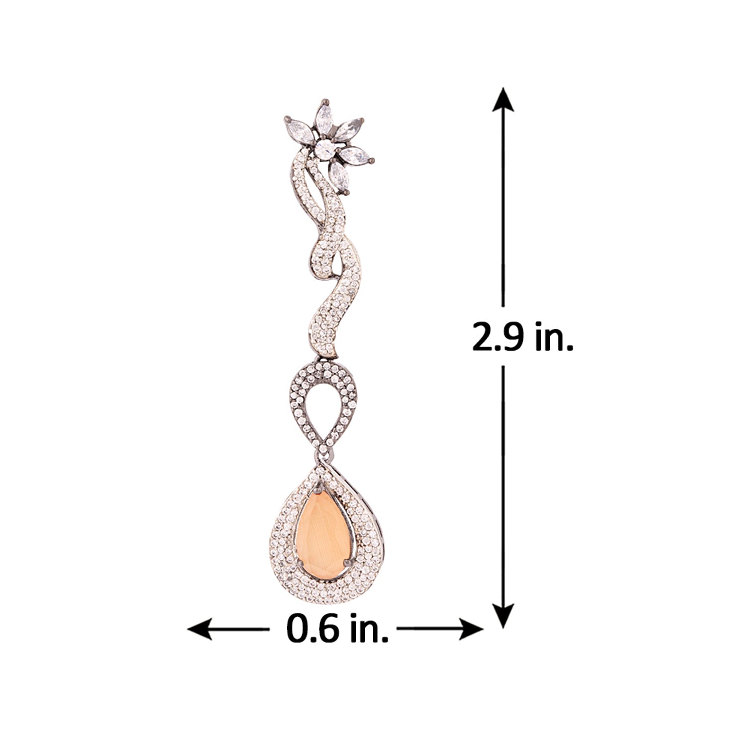 Teardrop cut zircon gemstones adorned statement earrings. Made from brass and black rhodium plated. Good for formal wear. This piece of jewelry comes with the Voylla assurance of quality and durability. Caring for your fashion jewelry: We, at Voylla, take...