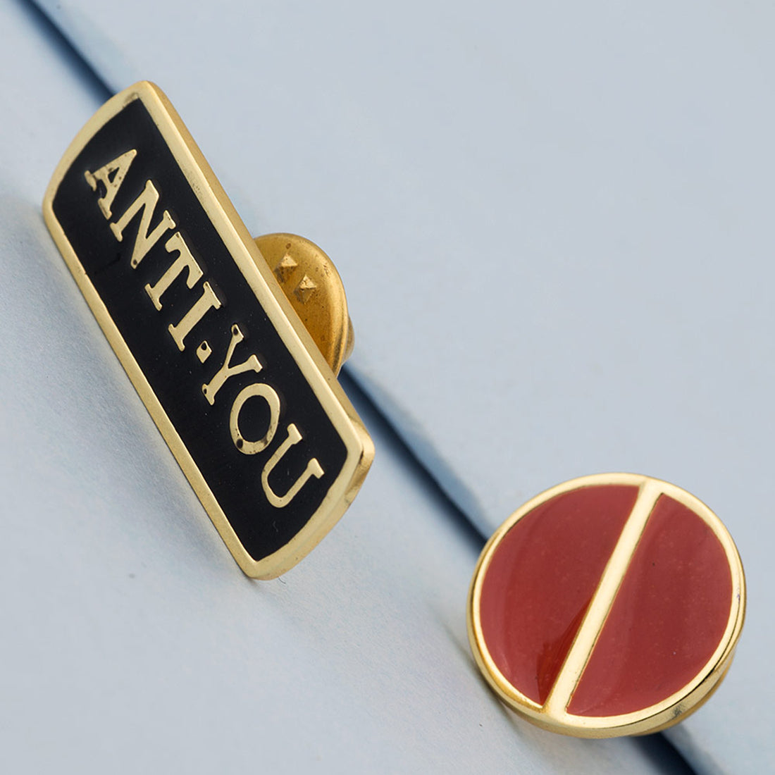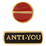 Step out looking gorgeous with this unique pair of brooch from the Voylla fashion house. A gold plated pair has an attractive enameling, scribbled with "Anti-You" in an excellent finish.