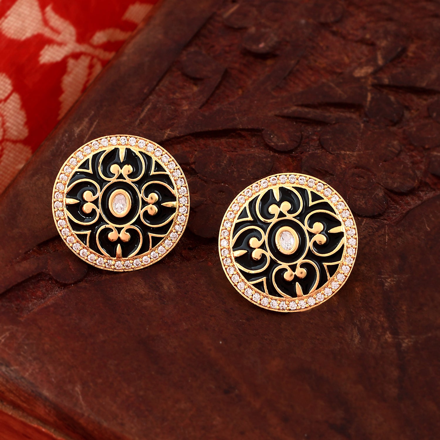 Brass zircon gemstones embellished earrings with black rhodium plating. Pair with formal looks. This piece of jewelry comes with the Voylla assurance of quality and durability. Caring for your fashion jewelry: We, at Voylla, take care of every piece of...