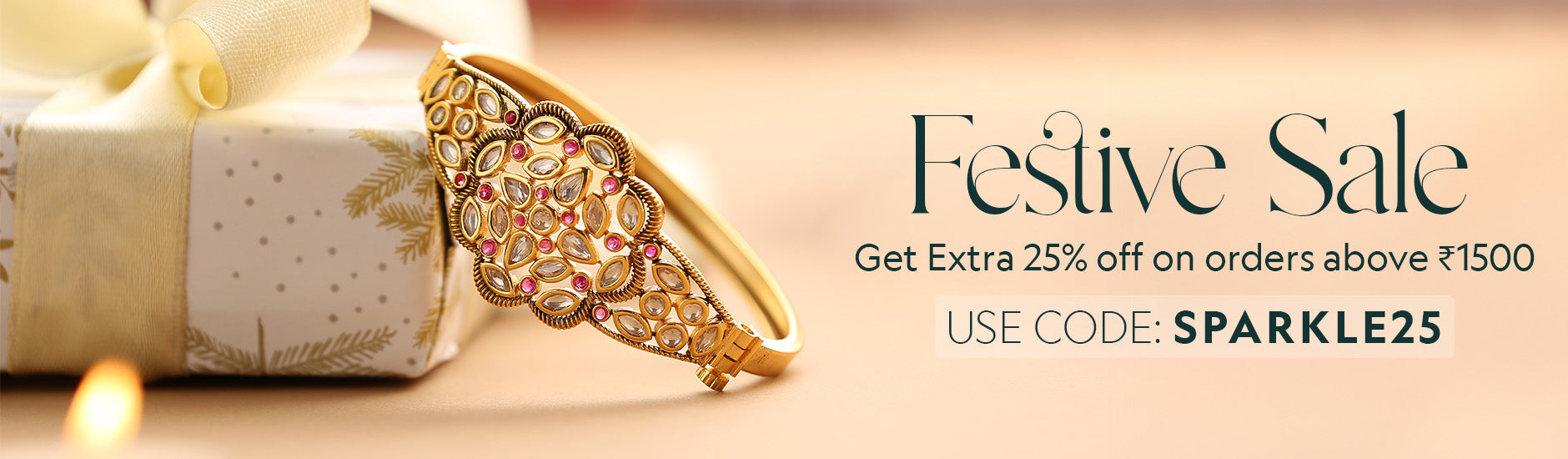 Bracelets & Bangles: Embrace the festive spirit with our collection of bracelets and bangles, featuring intricate designs in brass and sterling silver. Plated in gold, silver, or rhodium, and embellished with stones like American diamonds and Kundan, these pieces are perfect for layering or wearing solo.